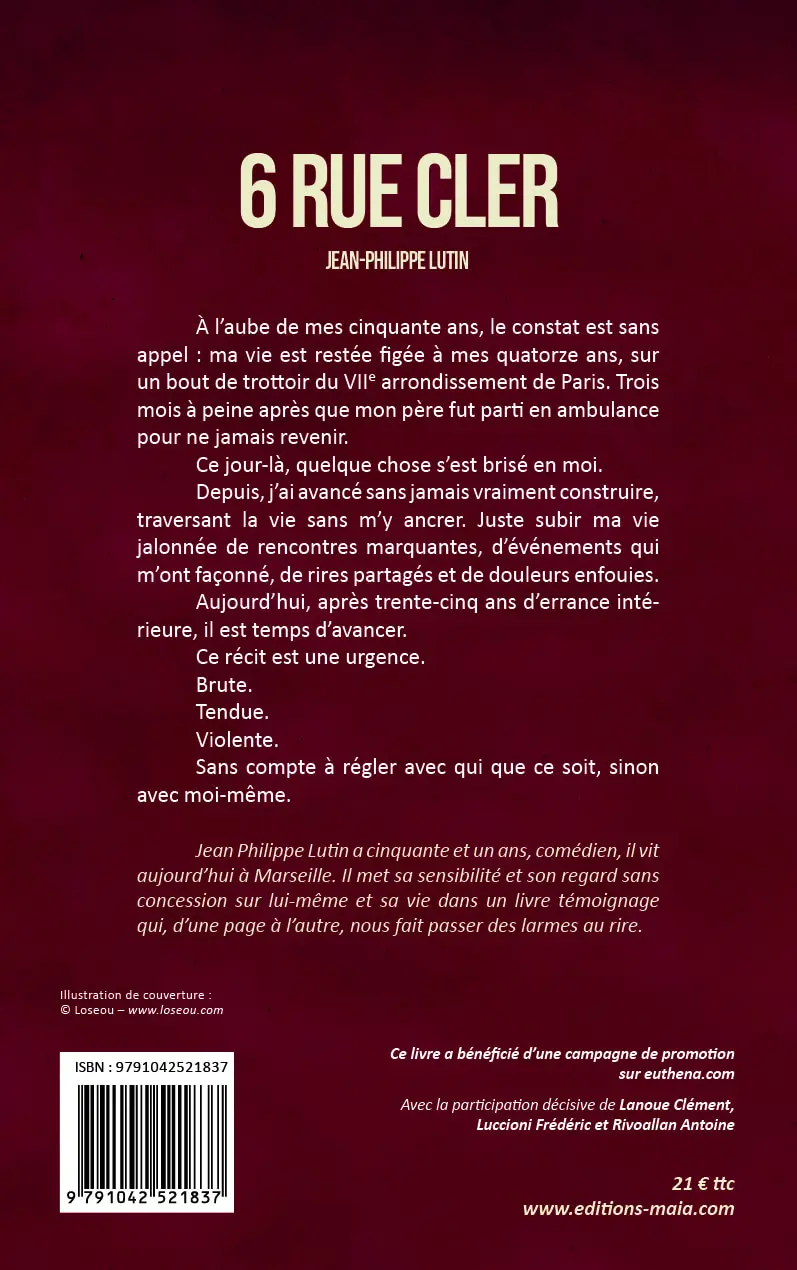 Jean Philippe Lutin a cinquante et un ans, comédien, il vit aujourd’hui à Marseille. Il met sa sensibilité et son regard sans concession sur lui-même et sa vie dans un livre témoignage qui, d’une page à l’autre, nous fait passer des larmes au rire.