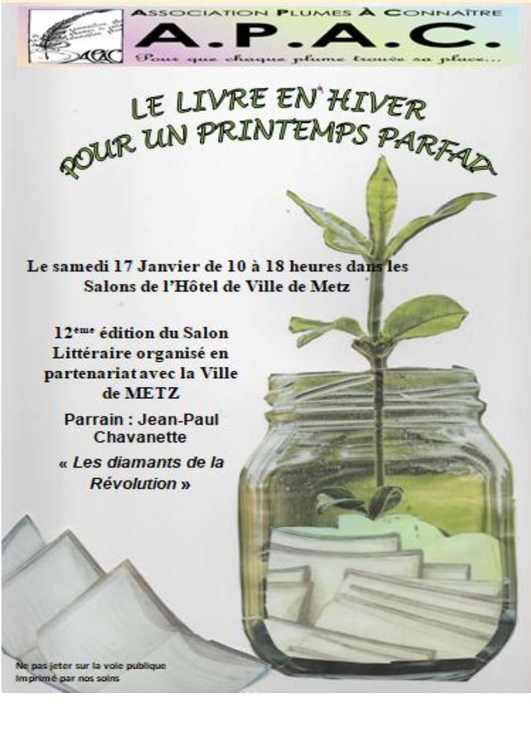 • 12ème édition du Salon « Le Livre en hiver » le Samedi 17 janvier 2026 de 10h à 18h à Metz (57000) dans (les salons de l’Hôtel de Ville).