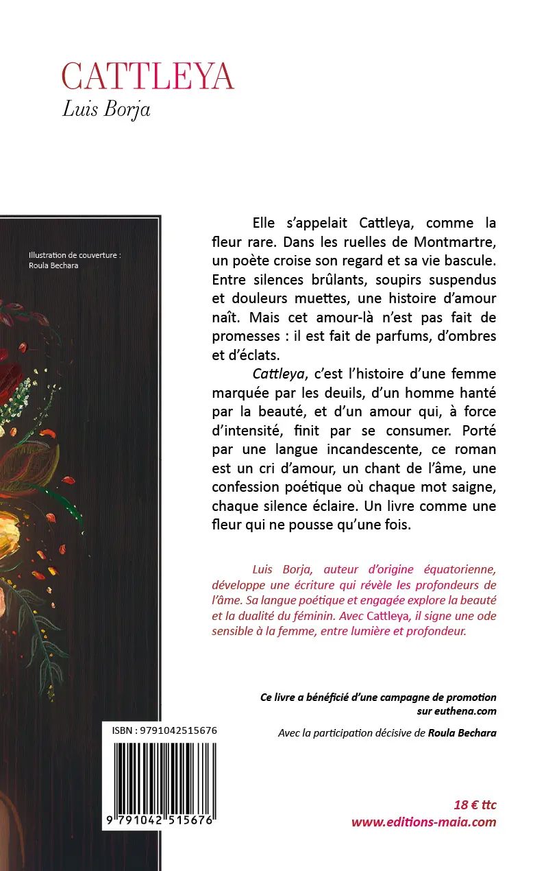 Luis Borja, auteur d’origine équatorienne, développe une écriture qui révèle les profondeurs de l’âme. Sa langue poétique et engagée explore la beauté et la dualité du féminin. Avec Cattleya, il signe une ode sensible à la femme, entre lumière et profondeur.
