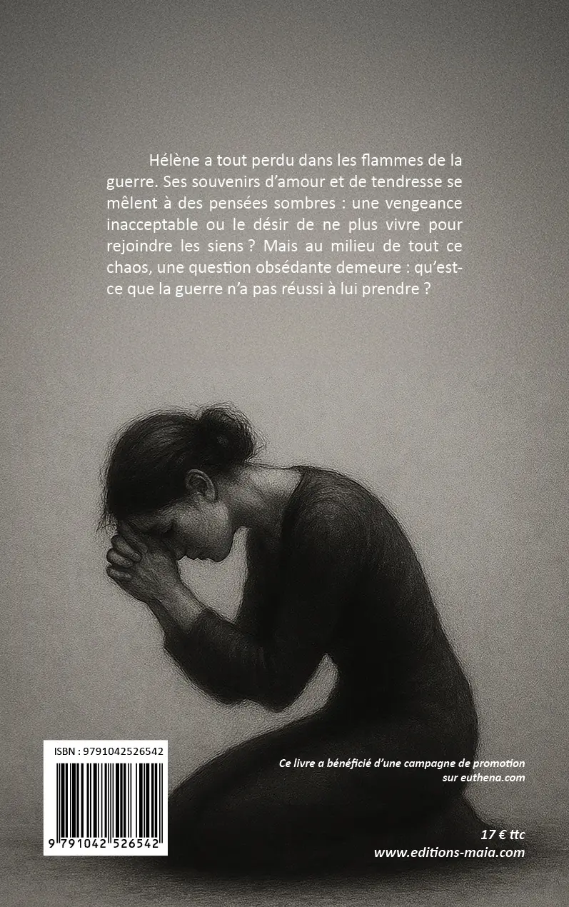 Hélène a tout perdu dans les flammes de la guerre. Ses souvenirs d’amour et de tendresse se mêlent à des pensées sombres : une vengeance inacceptable ou le désir de ne plus vivre pour rejoindre les siens ? Mais au milieu de tout ce chaos, une question obsédante demeure : qu’est-ce que la guerre n’a pas réussi à lui prendre ?