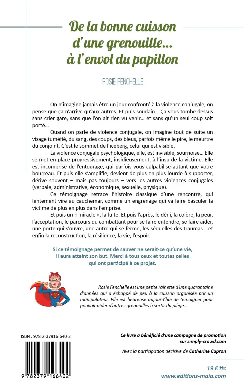 Rosie Fenchelle est une petite rainette d’une quarantaine d’années qui a échappé de peu à la cuisson organisée par un manipulateur. Elle est heureuse aujourd’hui de témoigner pour pouvoir aider d’autres grenouilles à sortir du piège…