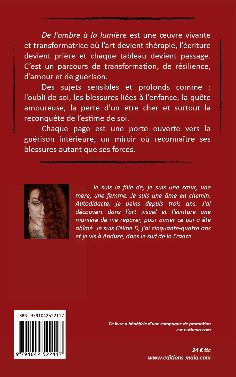 De l’ombre à la lumière est une œuvre vivante et transformatrice où l’art devient thérapie, l’écriture devient prière et chaque tableau devient passage. C’est un parcours de transformation, de résilience, d’amour et de guérison.