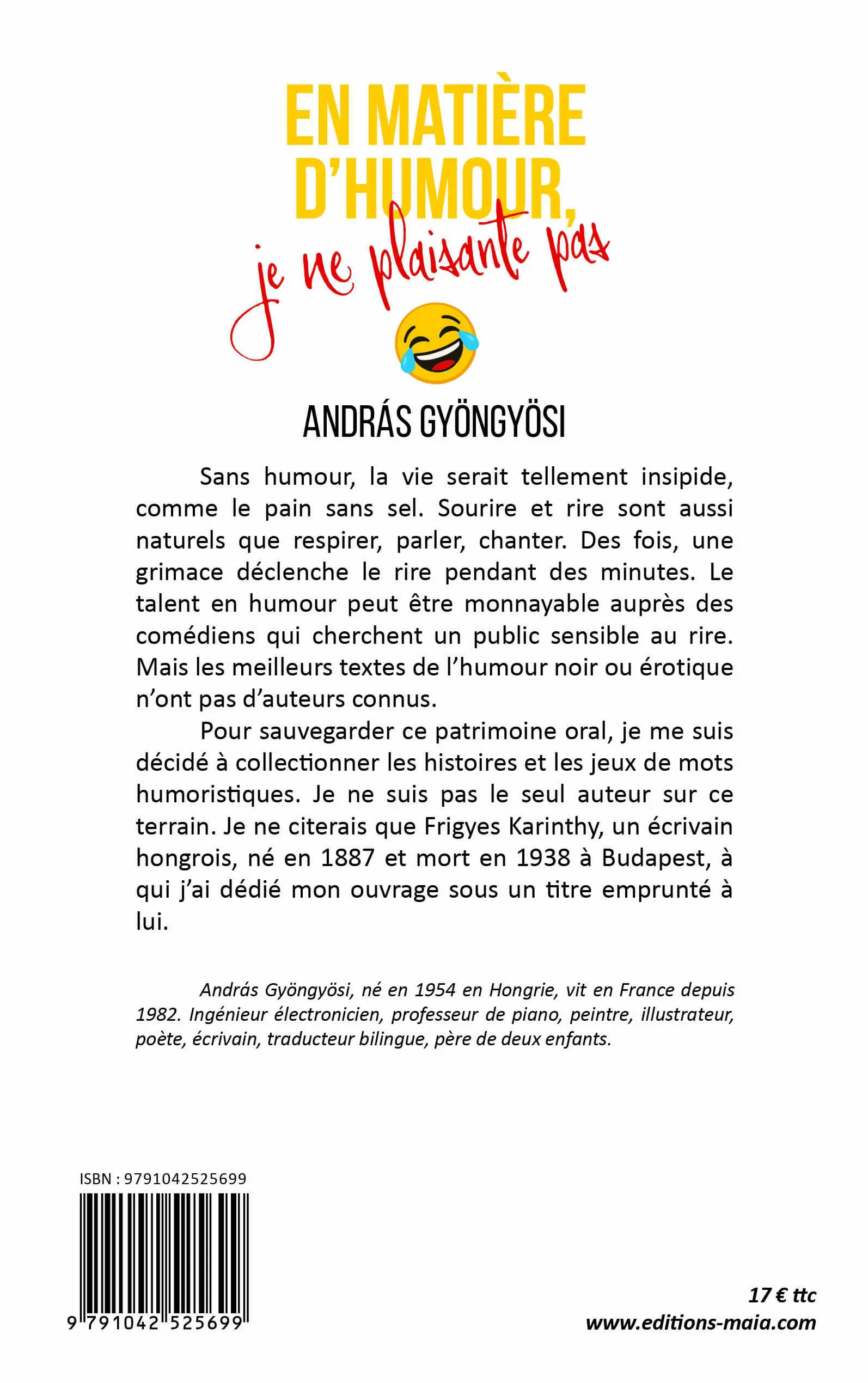 Pour sauvegarder ce patrimoine oral, je me suis décidé à collectionner les histoires et les jeux de mots humoristiques. Je ne suis pas le seul auteur sur ce terrain. Je ne citerais que Frigyes Karinthy, un écrivain hongrois, né en 1887 et mort en 1938 à Budapest, à qui j’ai dédié mon ouvrage sous un titre emprunté à lui.