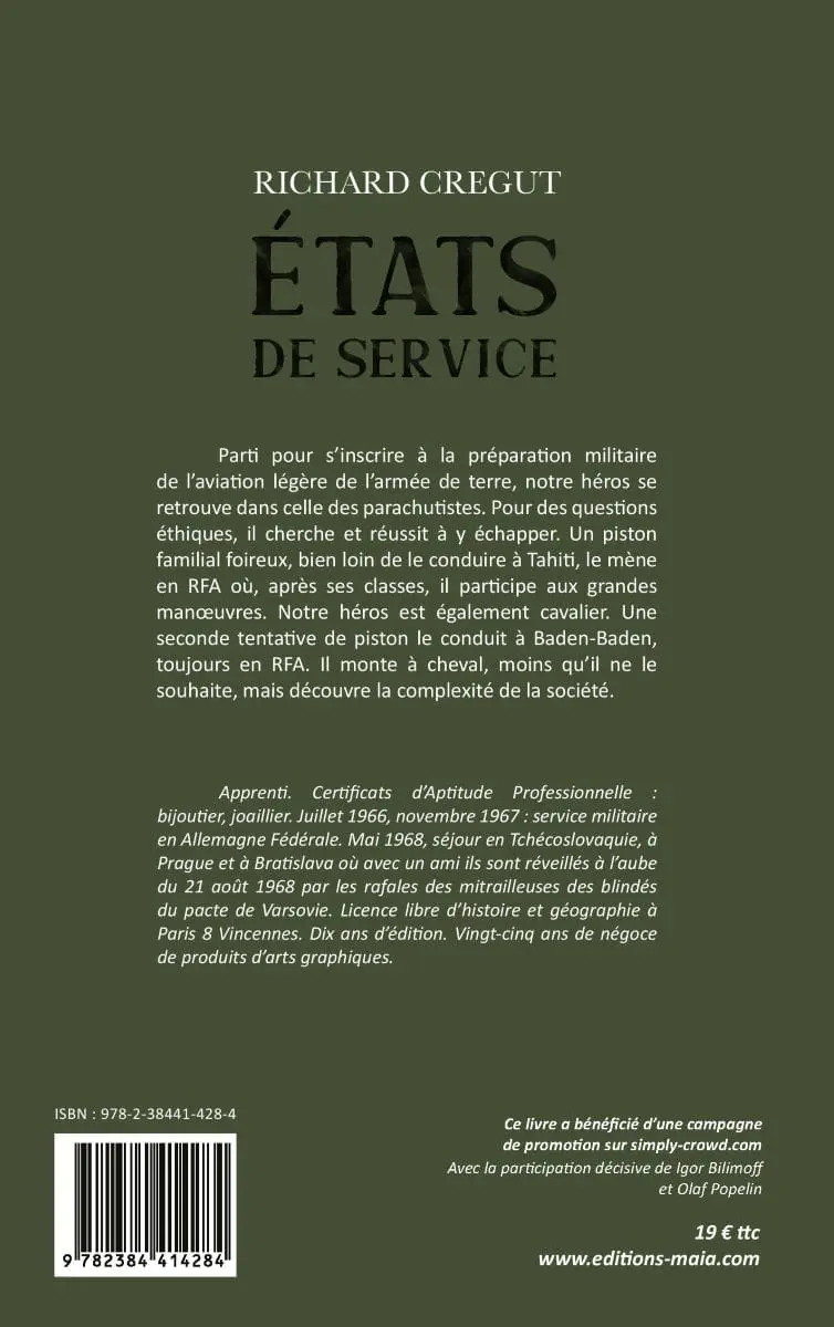 Parti pour s’inscrire à la préparation militaire de l’aviation légère de l’armée de terre, notre héros se retrouve dans celle des parachutistes. Pour des questions éthiques, il cherche et réussit à y échapper. Un piston familial foireux, bien loin de le conduire à Tahiti, le mène en RFA où, après ses classes, il participe aux grandes manœuvres. Notre héros est également cavalier. Une seconde tentative de piston le conduit à Baden-Baden, toujours en RFA. Il monte à cheval, moins qu’il ne le souhaite, mais découvre la complexité de la société.