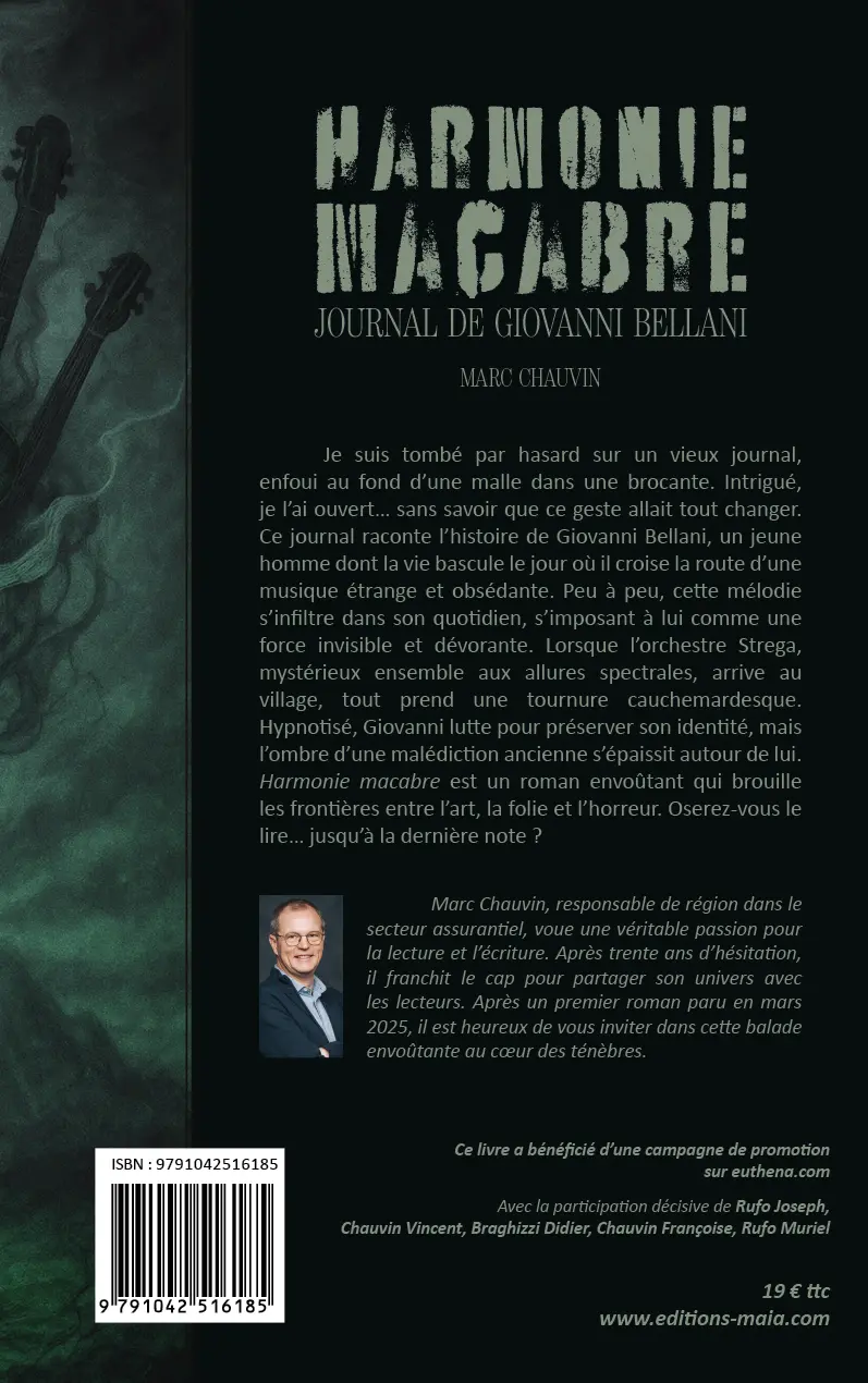 Je suis tombé par hasard sur un vieux journal, enfoui au fond d’une malle dans une brocante. Intrigué, je l’ai ouvert… sans savoir que ce geste allait tout changer. Ce journal raconte l’histoire de Giovanni Bellani, un jeune homme dont la vie bascule le jour où il croise la route d’une musique étrange et obsédante. Peu à peu, cette mélodie s’infiltre dans son quotidien, s’imposant à lui comme une force invisible et dévorante. Lorsque l’orchestre Strega, mystérieux ensemble aux allures spectrales, arrive au village, tout prend une tournure cauchemardesque. Hypnotisé, Giovanni lutte pour préserver son identité, mais l’ombre d’une malédiction ancienne s’épaissit autour de lui. Harmonie macabre est un roman envoûtant qui brouille les frontières entre l’art, la folie et l’horreur. Oserez-vous le lire… jusqu’à la dernière note ?