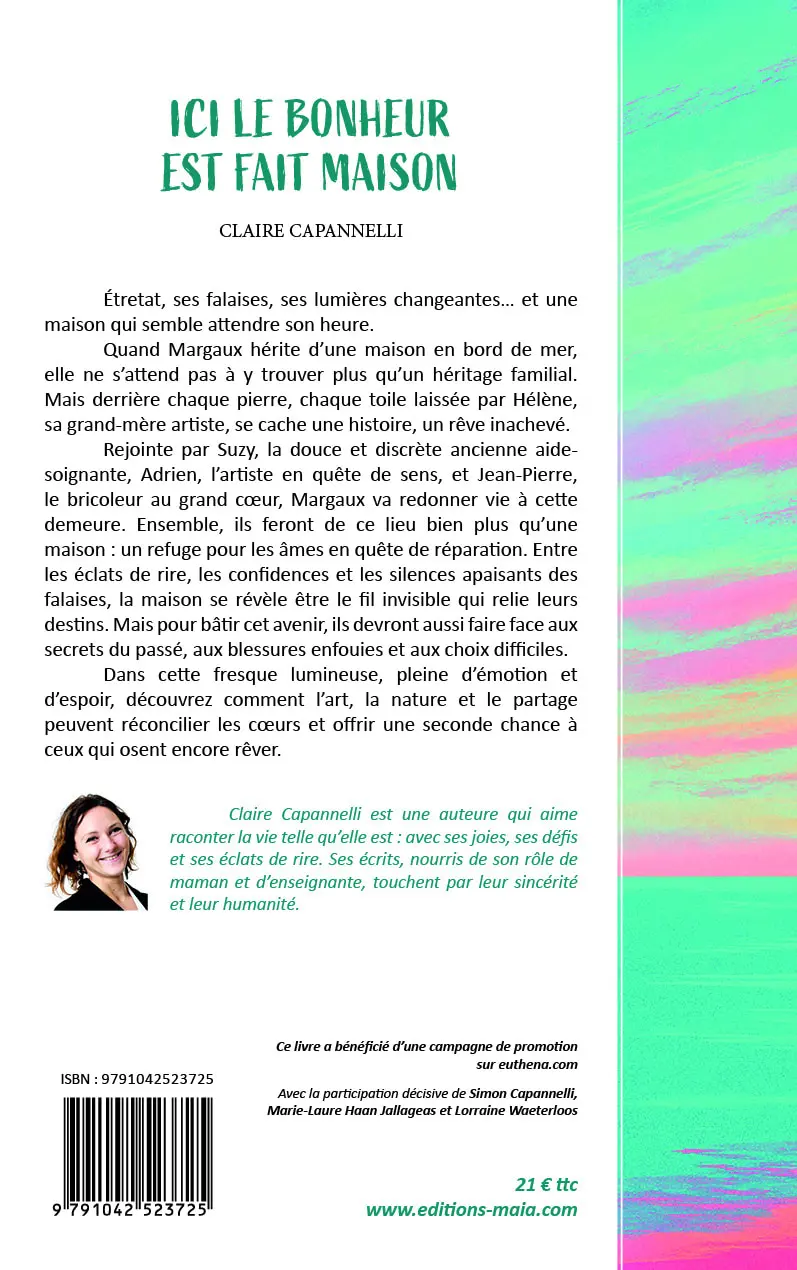 Rejointe par Suzy, la douce et discrète ancienne aide-soignante, Adrien, l’artiste en quête de sens, et Jean-Pierre, le bricoleur au grand cœur, Margaux va redonner vie à cette demeure. Ensemble, ils feront de ce lieu bien plus qu’une maison : un refuge pour les âmes en quête de réparation. Entre les éclats de rire, les confidences et les silences apaisants des falaises, la maison se révèle être le fil invisible qui relie leurs destins. Mais pour bâtir cet avenir, ils devront aussi faire face aux secrets du passé, aux blessures enfouies et aux choix difficiles.