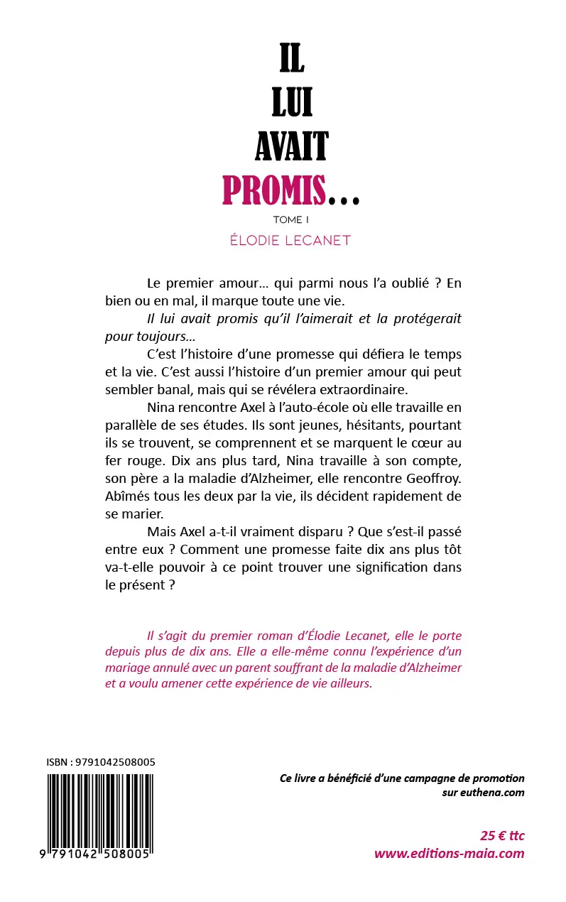 Il s’agit du premier roman d’Élodie Lecanet, elle le porte depuis plus de dix ans. Elle a elle-même connu l’expérience d’un mariage annulé avec un parent souffrant de la maladie d’Alzheimer et a voulu amener cette expérience de vie ailleurs.