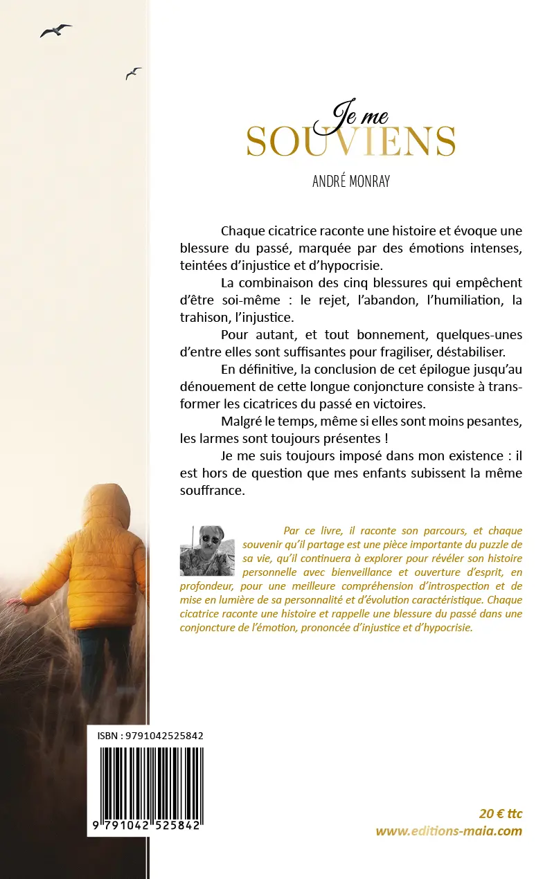 Par ce livre, il raconte son parcours, et chaque souvenir qu’il partage est une pièce importante du puzzle de sa vie, qu’il continuera à explorer pour révéler son histoire personnelle avec bienveillance et ouverture d’esprit, en profondeur, pour une meilleure compréhension d’introspection et de mise en lumière de sa personnalité et d’évolution caractéristique. Chaque cicatrice raconte une histoire et rappelle une blessure du passé dans une conjoncture de l’émotion, prononcée d’injustice et d’hypocrisie.