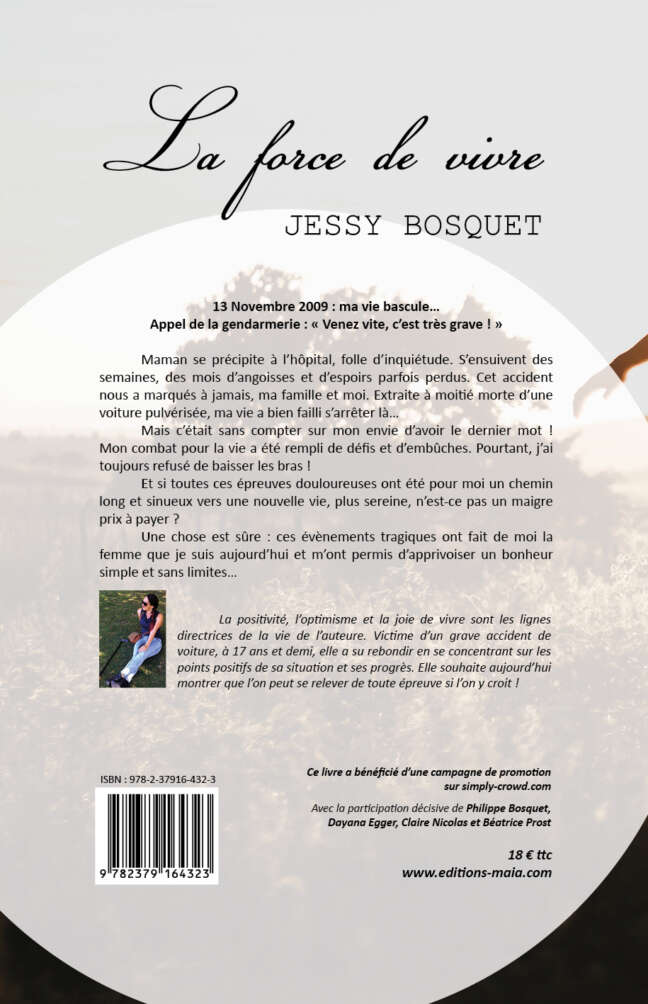 La positivité, l’optimisme et la joie de vivre sont les lignes directrices de la vie de l’auteure. Victime d’un grave accident de voiture, à 17 ans et demi, elle a su rebondir en se concentrant sur les points positifs de sa situation et ses progrès. Elle souhaite aujourd’hui montrer que l’on peut se relever de toute épreuve si l’on y croit !