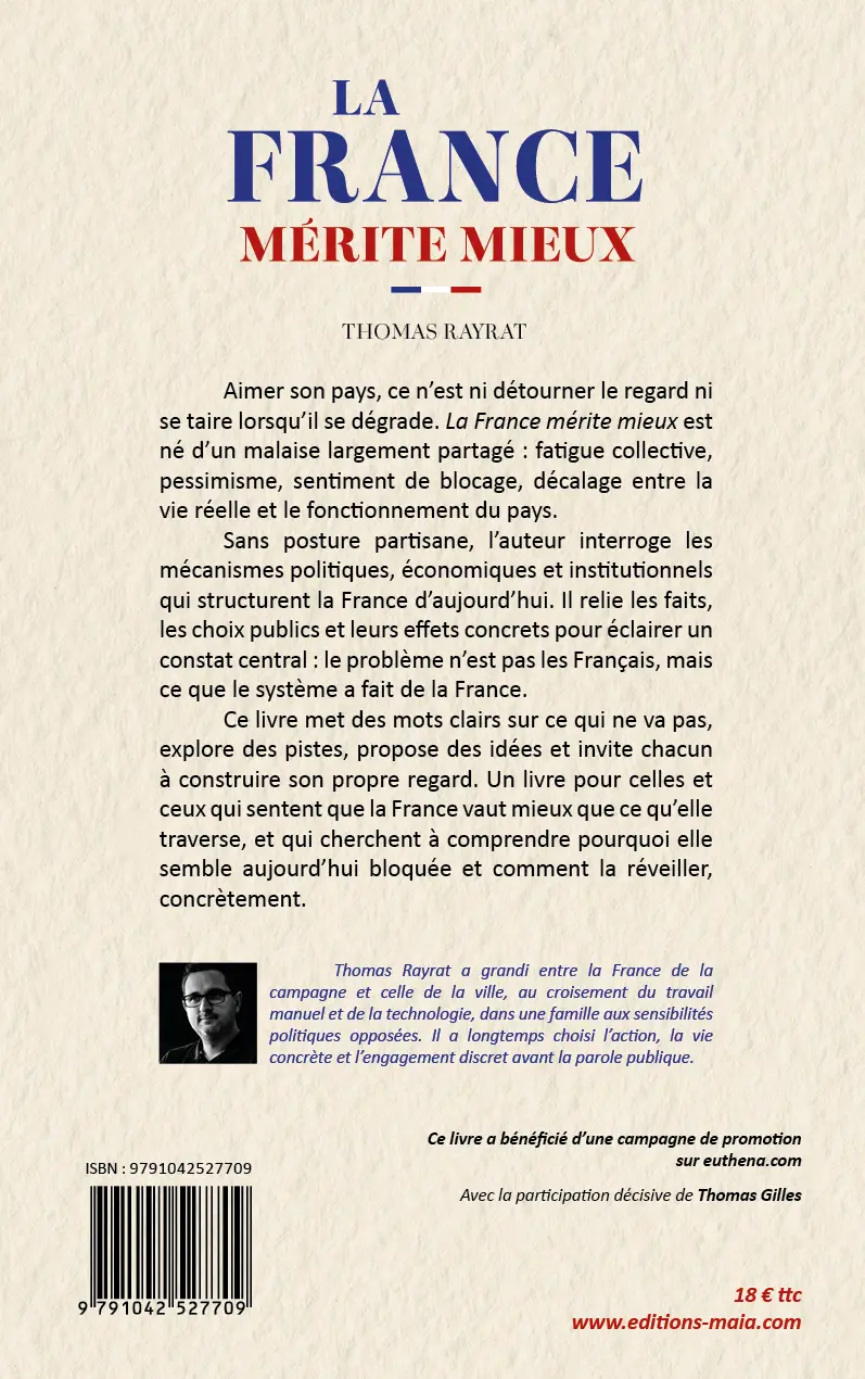 Aimer son pays, ce n’est ni détourner le regard ni se taire lorsqu’il se dégrade. La France mérite mieux est né d’un malaise largement partagé : fatigue collective, pessimisme, sentiment de blocage, décalage entre la vie réelle et le fonctionnement du pays.