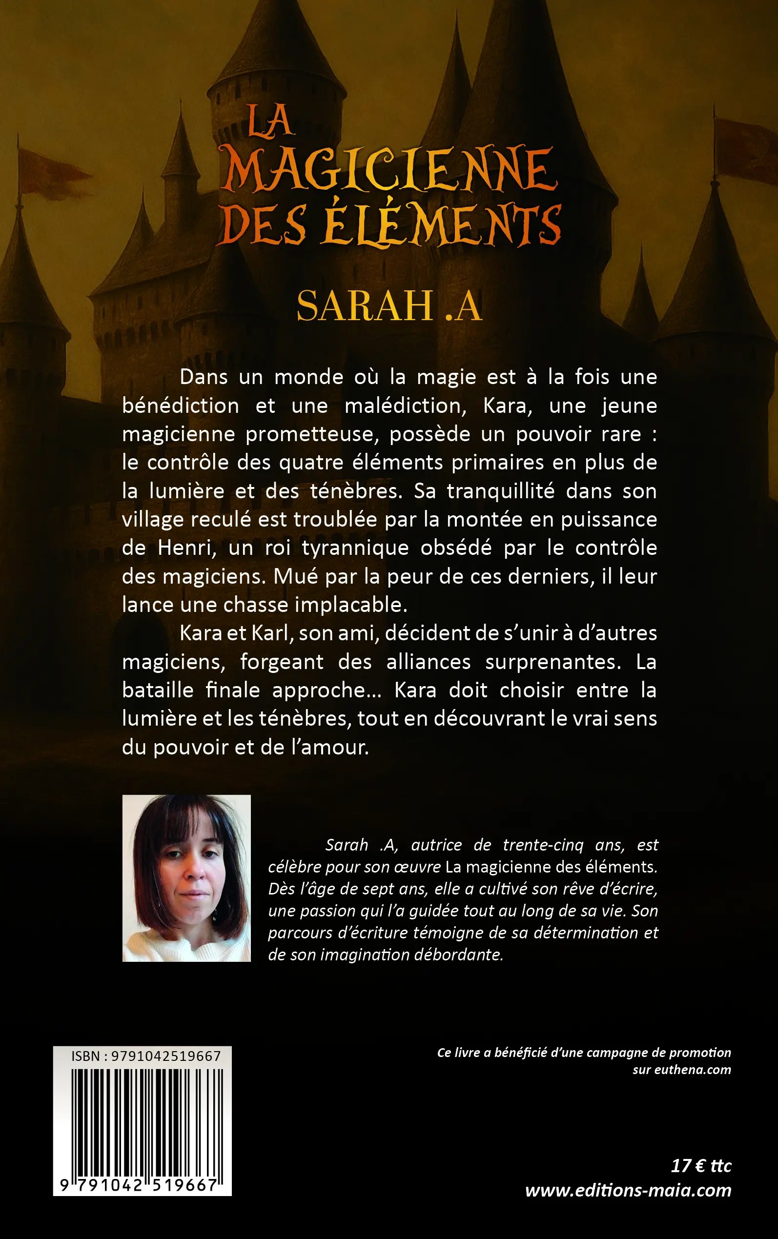 Sarah.A, autrice de trente-cinq ans, est célèbre pour son œuvre La magicienne des éléments. Dès l’âge de sept ans, elle a cultivé son rêve d’écrire, une passion qui l’a guidée tout au long de sa vie. Son parcours d’écriture témoigne de sa détermination et de son imagination débordante.