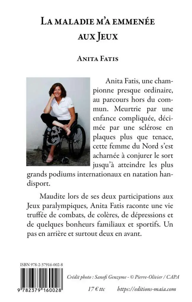 Maudite lors de ses deux participations aux Jeux paralympiques, Anita Fatis raconte une vie truffée de combats, de colères, de dépressions et de quelques bonheurs familiaux et sportifs. Un pas en arrière et surtout deux en avant.