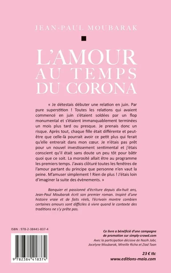 Banquier et passionné d’écriture depuis dix-huit ans, Jean-Paul Moubarak écrit son premier roman. Inspiré d’une histoire vraie et de faits réels, l’écrivain montre combien certaines amours sont difficiles à vivre quand le contexte des traditions ne s’y prête pas.