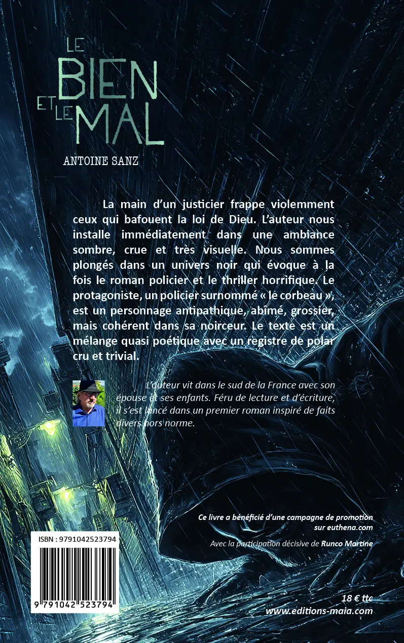 La main d’un justicier frappe violemment ceux qui bafouent la loi de Dieu. L’auteur nous installe immédiatement dans une ambiance sombre, crue et très visuelle. Nous sommes plongés dans un univers noir qui évoque à la fois le roman policier et le thriller horrifique. Le protagoniste, un policier surnommé « le corbeau », est un personnage antipathique, abîmé, grossier, mais cohérent dans sa noirceur. Le texte est un mélange quasi poétique avec un registre de polar cru et trivial.