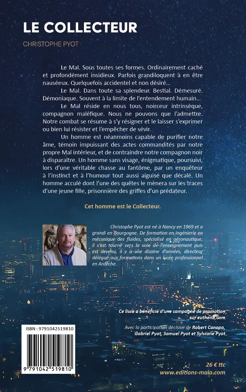 Un homme est néanmoins capable de purifier notre âme, témoin impuissant des actes commandités par notre propre Mal intérieur, et de contraindre notre compagnon noir à disparaître. Un homme sans visage, énigmatique, poursuivi, lors d’une véritable chasse au fantôme, par un enquêteur à l’instinct et à l’humour tout aussi aiguisé que décalé. Un homme acculé dont l’une des quêtes le mènera sur les traces d’une jeune fille, prisonnière des griffes d’un prédateur.