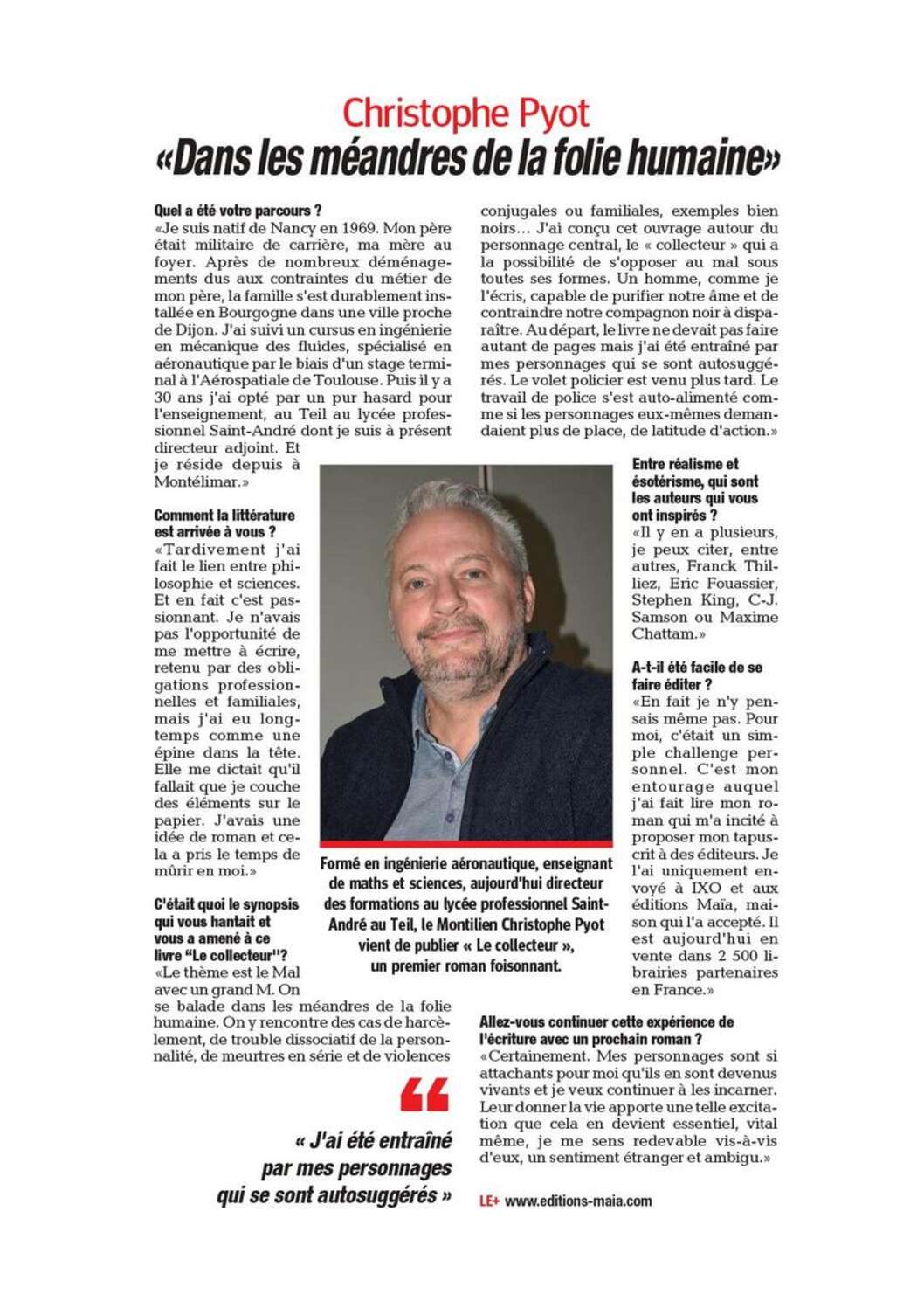 Christophe Pyot est né à Nancy en 1969 et a grandi en Bourgogne. De formation en ingénierie en mécanique des fluides, spécialisé en aéronautique, il s’est tourné vers la voie de l’enseignement puis est devenu, il y a une dizaine d’années, directeur délégué aux formations dans un lycée professionnel en Ardèche.