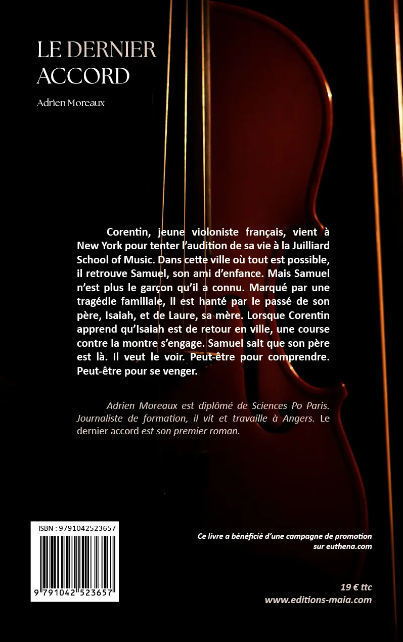 Corentin, jeune violoniste français, vient à New York pour tenter l’audition de sa vie à la Juilliard School of Music. Dans cette ville où tout est possible, il retrouve Samuel, son ami d’enfance. Mais Samuel n’est plus le garçon qu’il a connu. Marqué par une tragédie familiale, il est hanté par le passé de son père, Isaiah, et de Laure, sa mère. Lorsque Corentin apprend qu’Isaiah est de retour en ville, une course contre la montre s’engage. Samuel sait que son père est là. Il veut le voir. Peut-être pour comprendre. Peut-être pour se venger.