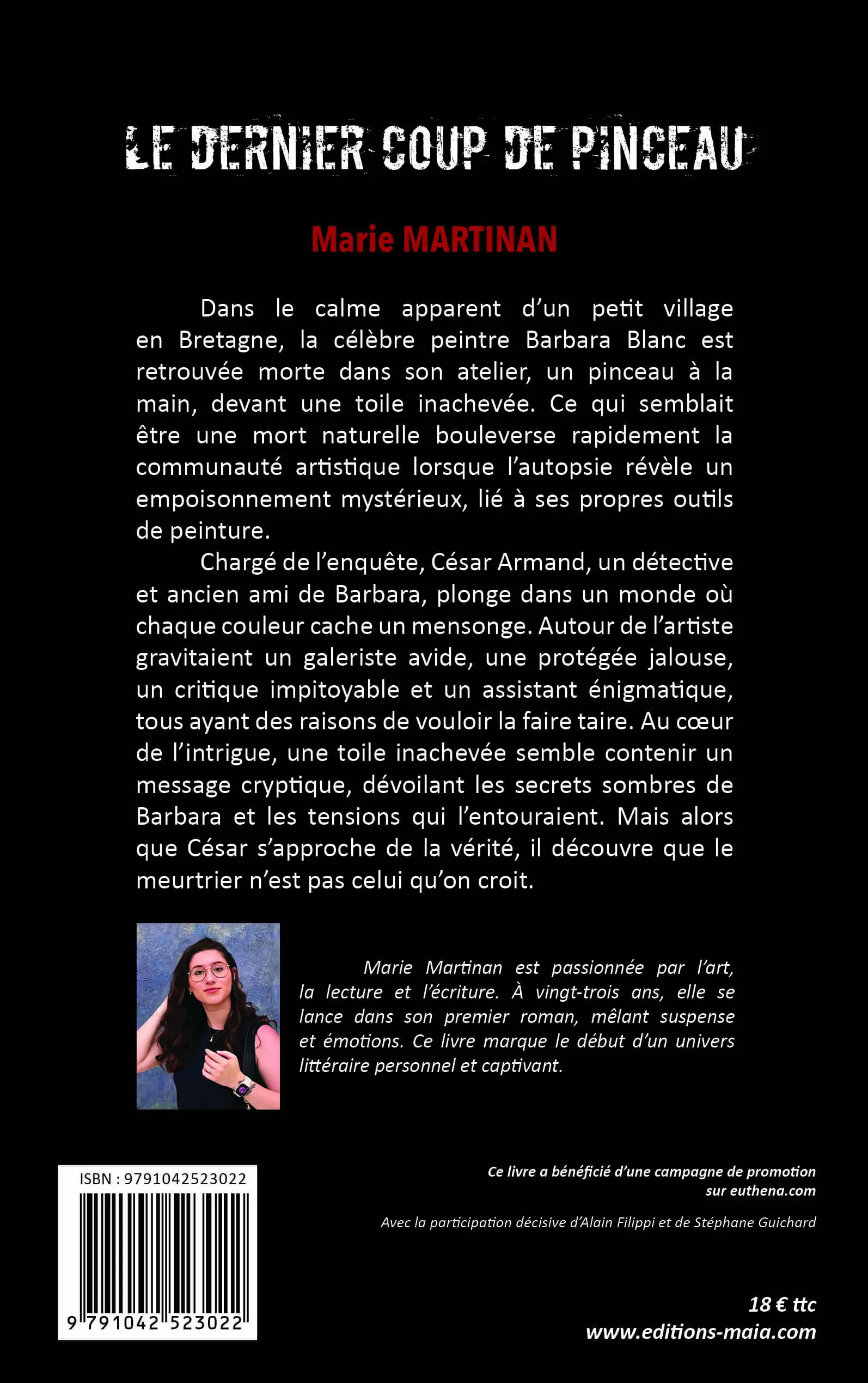 Marie Martinan est passionnée par l’art, la lecture et l’écriture. À vingt-trois ans, elle se lance dans son premier roman, mêlant suspense et émotions. Ce livre marque le début d’un univers littéraire personnel et captivant.