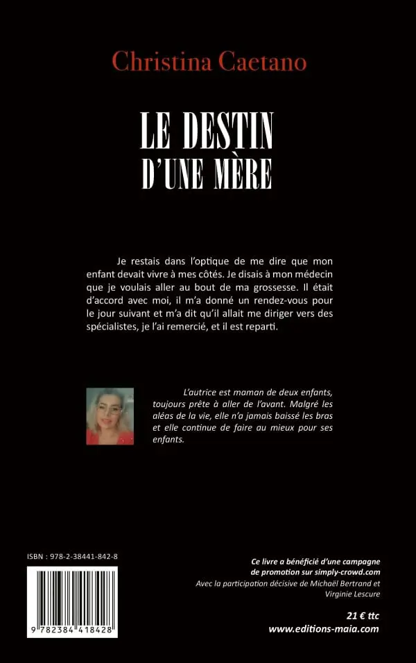 L’autrice est maman de deux enfants, toujours prête à aller de l’avant. Malgré les aléas de la vie, elle n’a jamais baissé les bras et elle continue de faire au mieux pour ses enfants.
