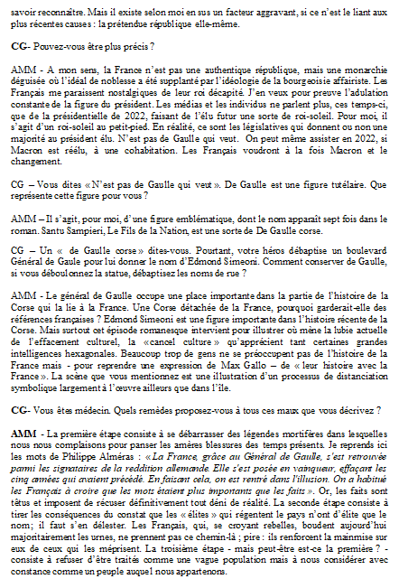 « Monsieur Sampieri, nous Américains, avons plusieurs fois remboursé à la France la dette que nous avions envers Gilbert du Motier de La Fayette. Il est grand temps maintenant que nous rendions aux Corses ce que nous devons à Pascal Paoli. »