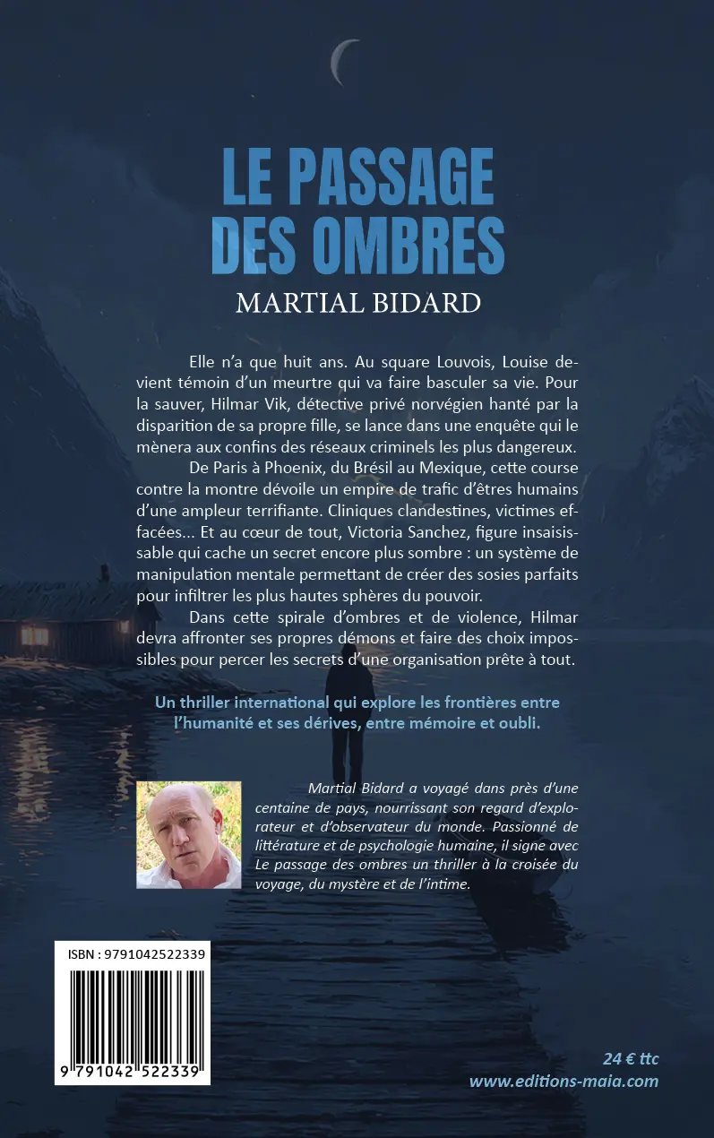 Martial Bidard a voyagé dans près d’une centaine de pays, nourrissant son regard d’explorateur et d’observateur du monde. Passionné de littérature et de psychologie humaine, il signe avec Le passage des ombres un thriller à la croisée du voyage, du mystère et de l’intime.
