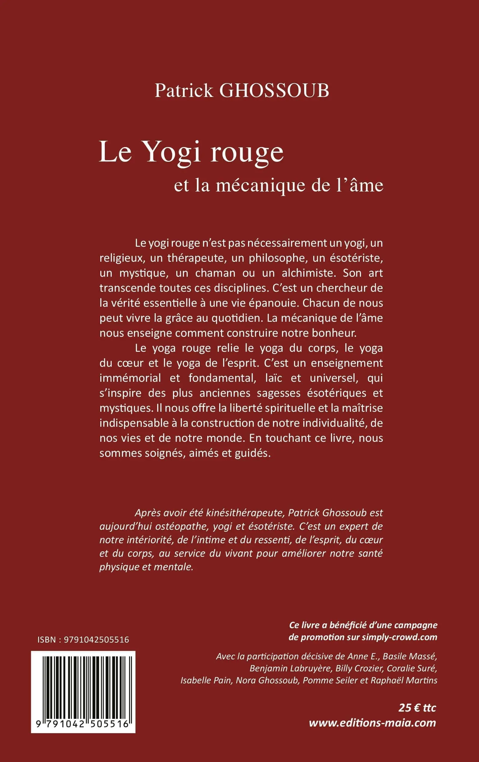 Le yogi rouge n’est pas nécessairement un yogi, un religieux, un thérapeute, un philosophe, un ésotériste, un mystique, un chaman ou un alchimiste. Son art transcende toutes ces disciplines. C’est un chercheur de la vérité essentielle à une vie épanouie. Chacun de nous peut vivre la grâce au quotidien. La mécanique de l’âme nous enseigne comment construire notre bonheur.