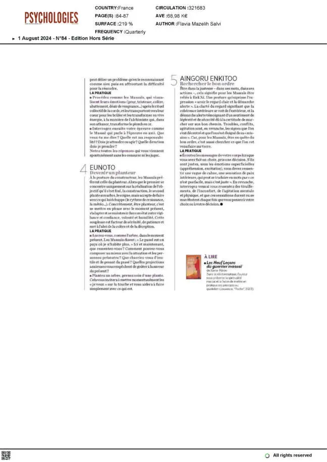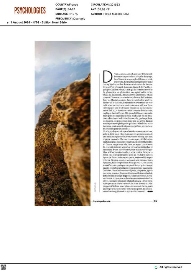 Associant la sagesse issue des traditions maasaï à la connaissance qu’il a acquise dans le cheminement de sa vie personnelle, Xavier Péron, anthropologue politique, expert des peuples premiers, écrivain et coach de vie, aide aujourd’hui les autres à s’accomplir sur leur chemin en pleine conscience et en toute liberté.