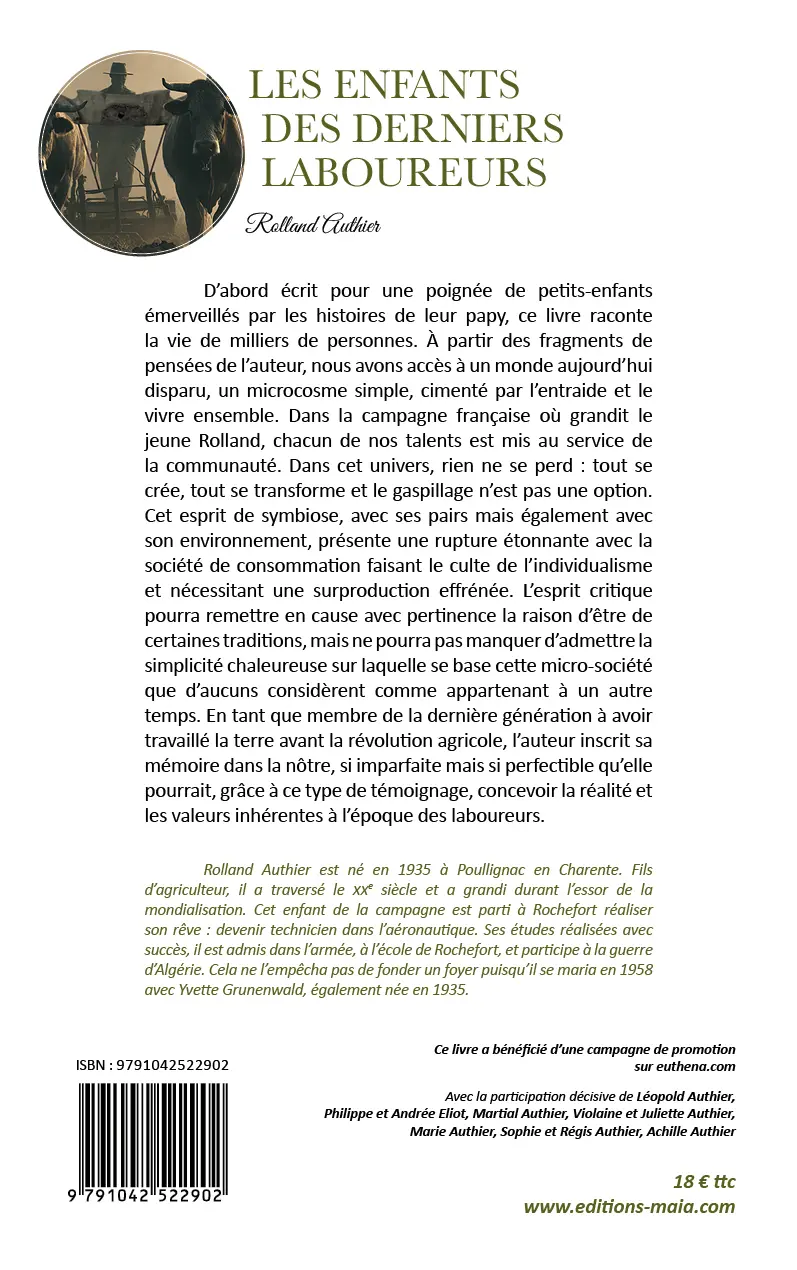 D’abord écrit pour une poignée de petits-enfants émerveillés par les histoires de leur papy, ce livre raconte la vie de milliers de personnes. À partir des fragments de pensées de l’auteur, nous avons accès à un monde aujourd’hui disparu, un microcosme simple, cimenté par l’entraide et le vivre ensemble. Dans la campagne française où grandit le jeune Rolland, chacun de nos talents est mis au service de la communauté. Dans cet univers, rien ne se perd : tout se crée, tout se transforme et le gaspillage n’est pas une option. Cet esprit de symbiose, avec ses pairs mais également avec son environnement, présente une rupture étonnante avec la société de consommation faisant le culte de l’individualisme et nécessitant une surproduction effrénée. L’esprit critique pourra remettre en cause avec pertinence la raison d’être de certaines traditions, mais ne pourra pas manquer d’admettre la simplicité chaleureuse sur laquelle se base cette micro-société que d’aucuns considèrent comme appartenant à un autre temps. En tant que membre de la dernière génération à avoir travaillé la terre avant la révolution agricole, l’auteur inscrit sa mémoire dans la nôtre, si imparfaite mais si perfectible qu’elle pourrait, grâce à ce type de témoignage, concevoir la réalité et les valeurs inhérentes à l’époque des laboureurs.