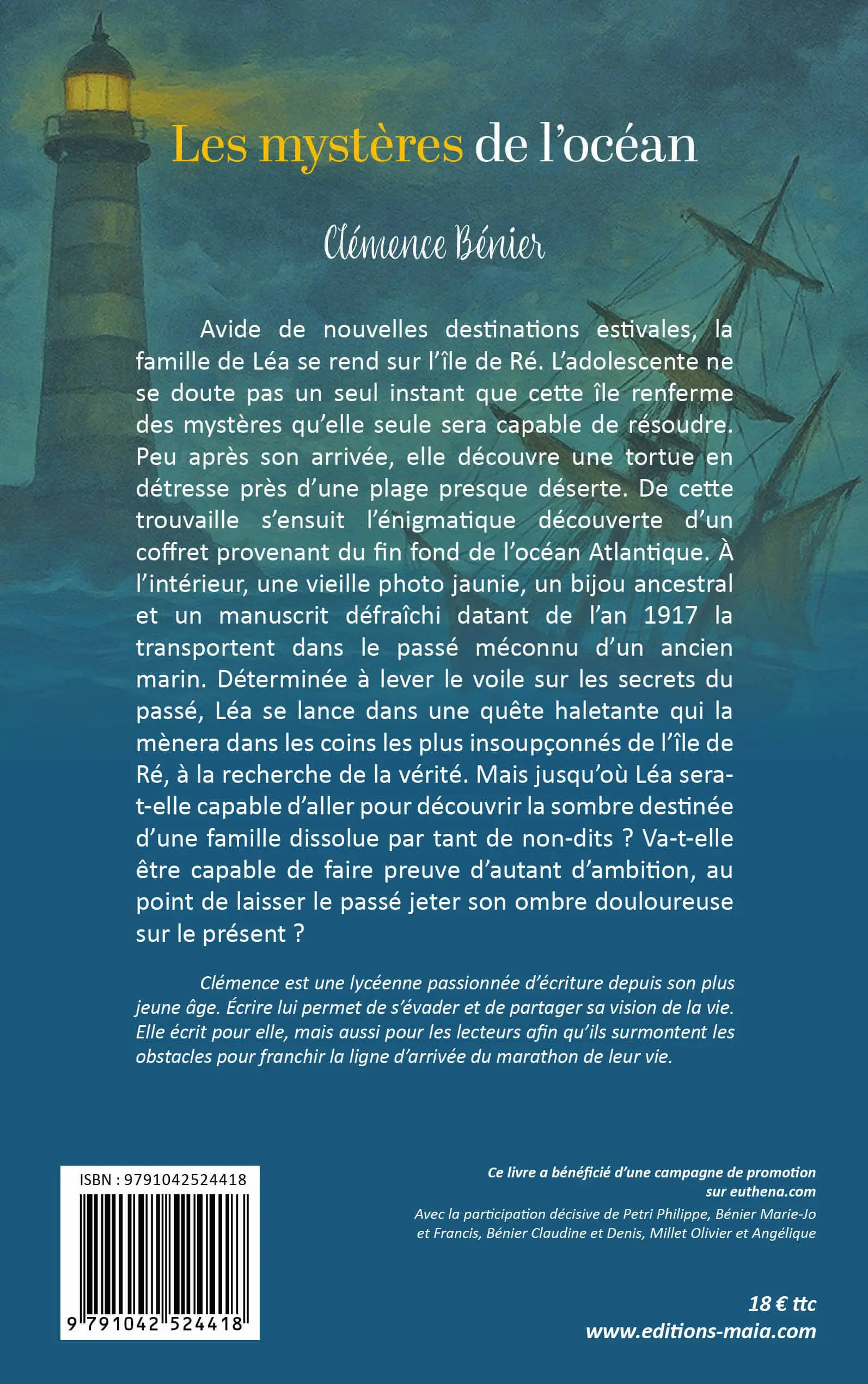 Avide de nouvelles destinations estivales, la famille de Léa se rend sur l’île de Ré. L’adolescente ne se doute pas un seul instant que cette île renferme des mystères qu’elle seule sera capable de résoudre. Peu après son arrivée, elle découvre une tortue en détresse près d’une plage presque déserte. De cette trouvaille s’ensuit l’énigmatique découverte d’un coffret provenant du fin fond de l’océan Atlantique. À l’intérieur, une vieille photo jaunie, un bijou ancestral et un manuscrit défraîchi datant de l’an 1917 la transportent dans le passé méconnu d’un ancien marin. Déterminée à lever le voile sur les secrets du passé, Léa se lance dans une quête haletante qui la mènera dans les coins les plus insoupçonnés de l’île de Ré, à la recherche de la vérité. Mais jusqu’où Léa sera-t-elle capable d’aller pour découvrir la sombre destinée d’une famille dissolue par tant de non-dits ? Va-t-elle être capable de faire preuve d’autant d’ambition, au point de laisser le passé jeter son ombre douloureuse sur le présent ?
