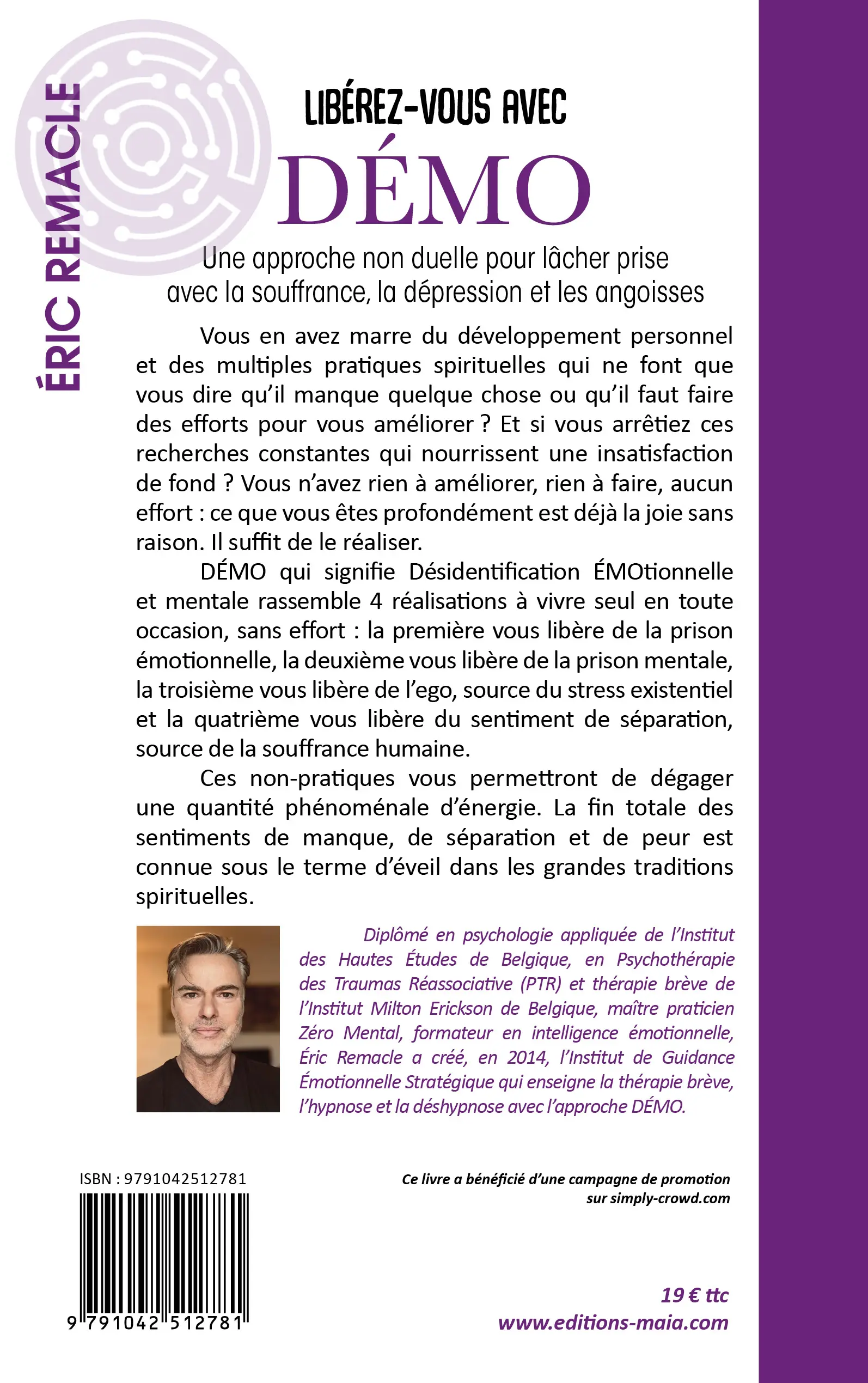 Vous en avez marre du développement personnel et des multiples pratiques spirituelles qui ne font que vous dire qu’il manque quelque chose ou qu’il faut faire des efforts pour vous améliorer ? Et si vous arrêtiez ces recherches constantes qui nourrissent une insatisfaction de fond ? Vous n’avez rien à améliorer, rien à faire, aucun effort : ce que vous êtes profondément est déjà la joie sans raison. Il suffit de le réaliser. DÉMO qui signifie Désidentification ÉMOtionnelle et mentale rassemble 4 réalisations à vivre seul en toute occasion, sans effort : la première vous libère de la prison émotionnelle, la deuxième vous libère de la prison mentale, la troisième vous libère de l’ego, source du stress existentiel et la quatrième vous libère du sentiment de séparation, source de la souffrance humaine. Ces non-pratiques vous permettront de dégager une quantité phénoménale d’énergie. La fin totale des sentiments de manque, de séparation et de peur est connue sous le terme d’éveil dans les grandes traditions spirituelles.