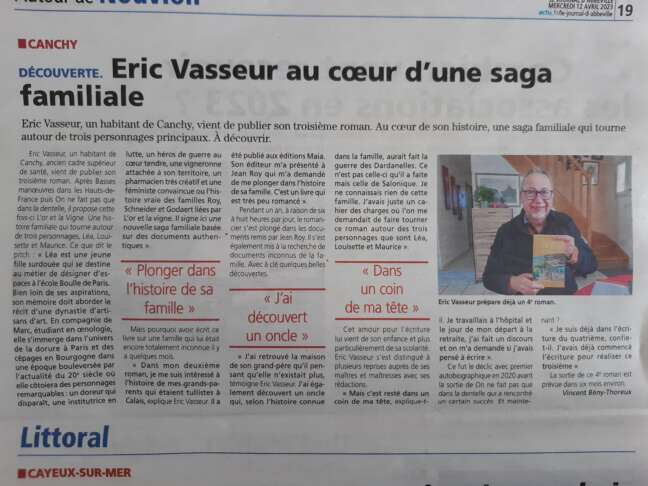 Ancien cadre supérieur de santé, Éric Vasseur a écrit un premier roman autobiographique sur le milieu hospitalier. Son second ouvrage relate l’histoire d’une dynastie d’industriels textiles des Hauts-de-France. Il signe ici une nouvelle saga familiale basée sur des documents authentiques transmis par Jean Roy.