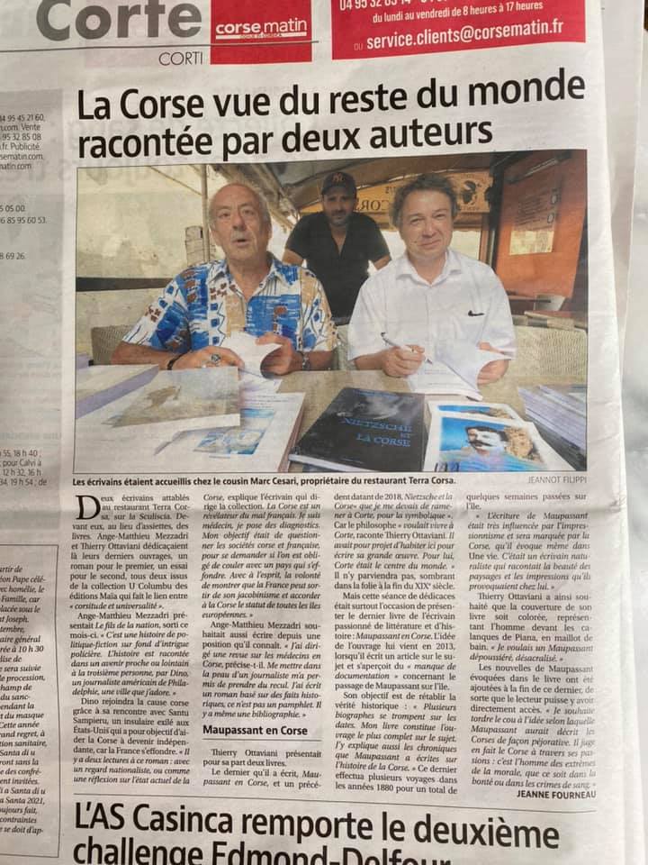 L’auteur et son livre apparaissent également plusieurs fois dans Corse Matin : le 23/12/21, le 26/08/21, le 01/08/21.