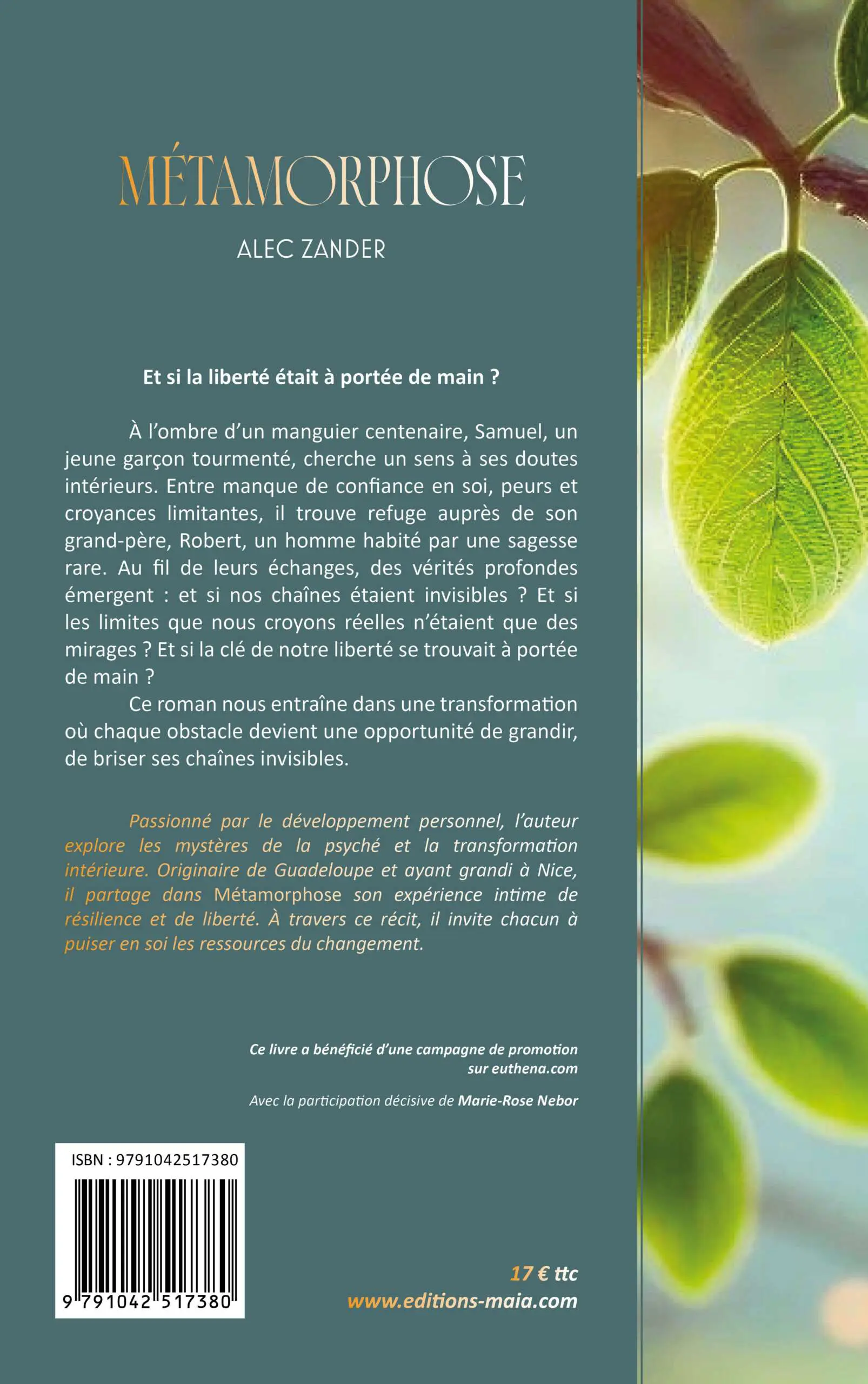 À l’ombre d’un manguier centenaire, Samuel, un jeune garçon tourmenté, cherche un sens à ses doutes intérieurs. Entre manque de confiance en soi, peurs et croyances limitantes, il trouve refuge auprès de son grand-père, Robert, un homme habité par une sagesse rare. Au fil de leurs échanges, des vérités profondes émergent : et si nos chaînes étaient invisibles ? Et si les limites que nous croyons réelles n’étaient que des mirages ? Et si la clé de notre liberté se trouvait à portée de main ?