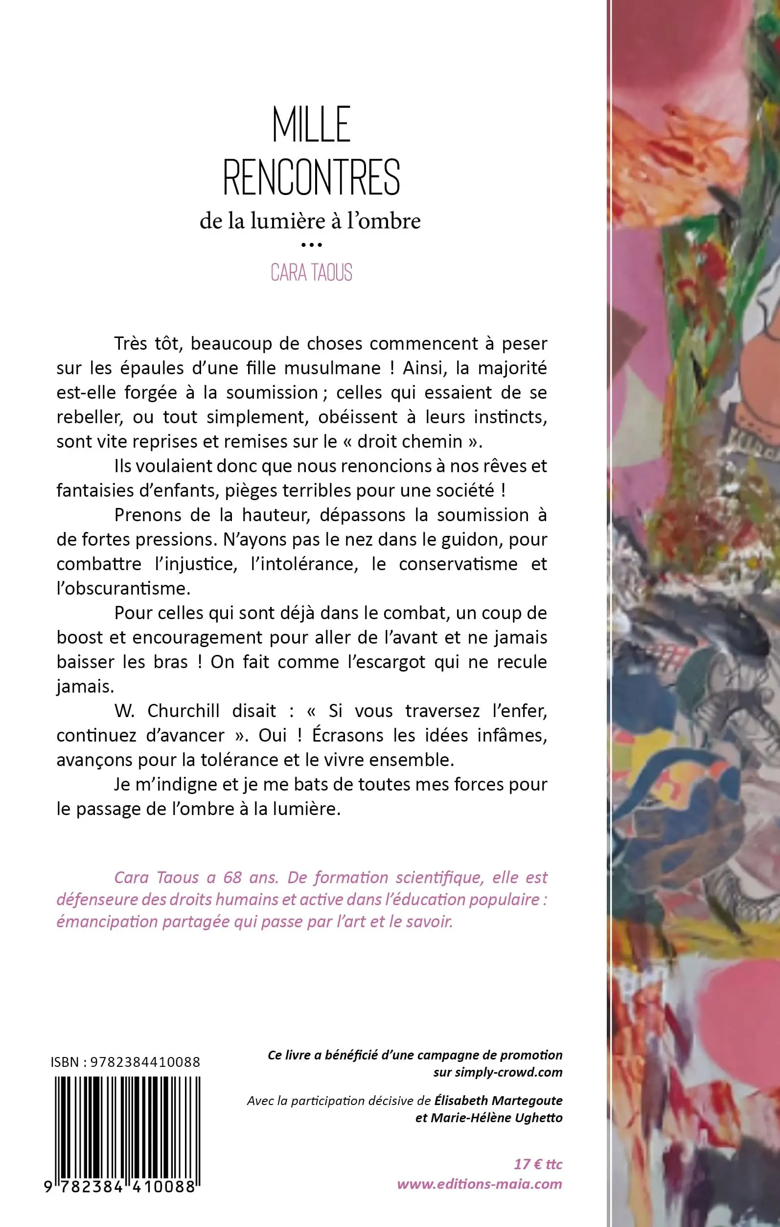 Cara Taous a 68 ans. De formation scientifique, elle est défenseure des droits humains et active dans l’éducation populaire : émancipation partagée qui passe par l’art et le savoir.