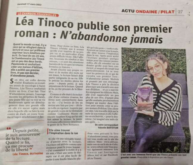 Léa est une jeune étudiante passionnée par l’univers du livre. Elle est depuis toute petite amoureuse de la lecture, et l’écriture a vite fait surface dans sa vie. Elle aimerait continuer ses études pour, par la suite, créer sa propre maison d’édition. Devenir auteure était son rêve et le voilà devenu réalité.