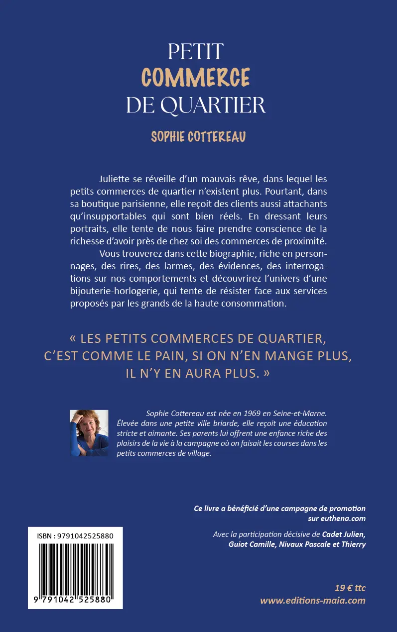 Vous trouverez dans cette biographie, riche en personnages, des rires, des larmes, des évidences, des interrogations sur nos comportements et découvrirez l’univers d’une bijouterie-horlogerie, qui tente de résister face aux services proposés par les grands de la haute consommation.