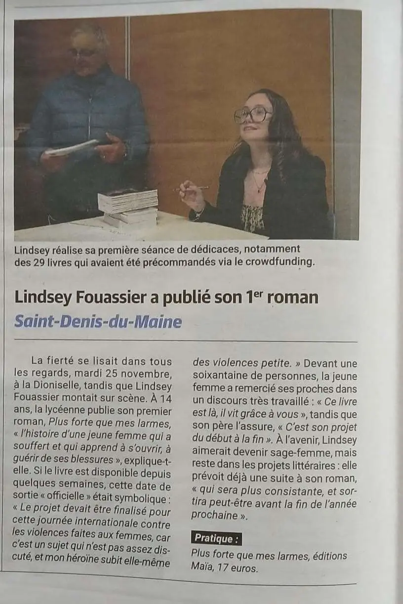 Lindsey Fouassier est une jeune écrivaine de quatorze ans, originaire de la Mayenne. Passionnée par l’écriture depuis l’enfance, elle aborde des sujets profonds avec une maturité étonnante.
