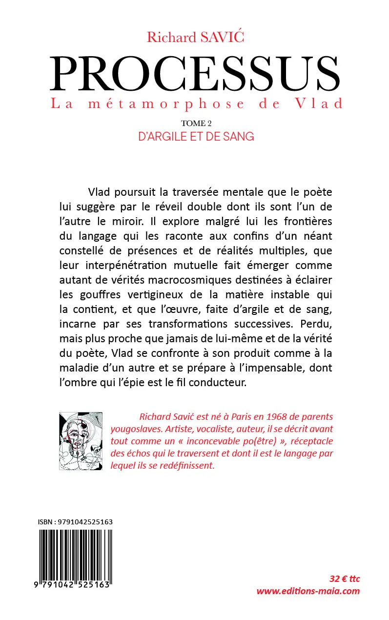 Vlad poursuit la traversée mentale que le poète lui suggère par le réveil double dont ils sont l’un de l’autre le miroir. Il explore malgré lui les frontières du langage qui les raconte aux confins d’un néant constellé de présences et de réalités multiples, que leur interpénétration mutuelle fait émerger comme autant de vérités macrocosmiques destinées à éclairer les gouffres vertigineux de la matière instable qui la contient, et que l’œuvre, faite d’argile et de sang, incarne par ses transformations successives. Perdu, mais plus proche que jamais de lui-même et de la vérité du poète, Vlad se confronte à son produit comme à la maladie d’un autre et se prépare à l’impensable, dont l’ombre qui l’épie est le fil conducteur.