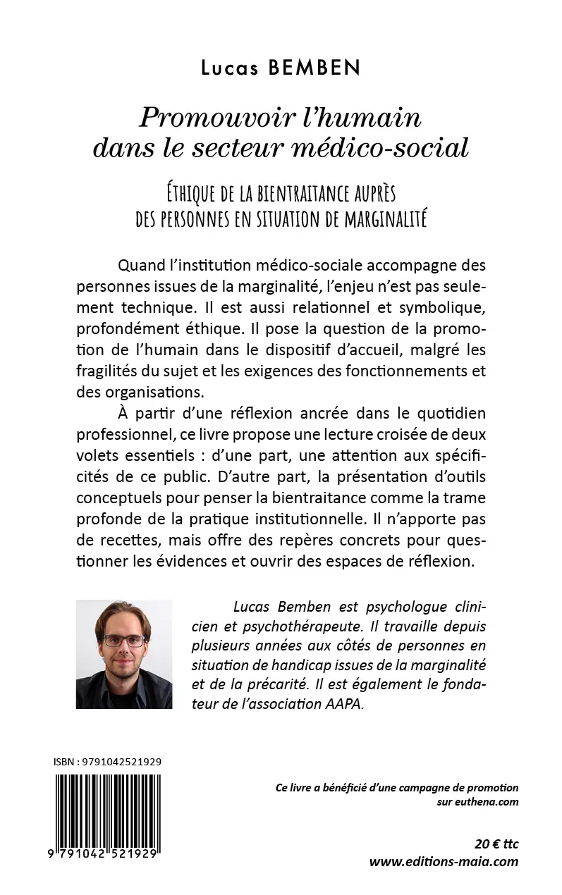 Lucas Bemben est psychologue clinicien et psychothérapeute. Il travaille depuis plusieurs années aux côtés de personnes en situation de handicap issues de la marginalité et de la précarité. Il est également le fondateur de l’association AAPA.