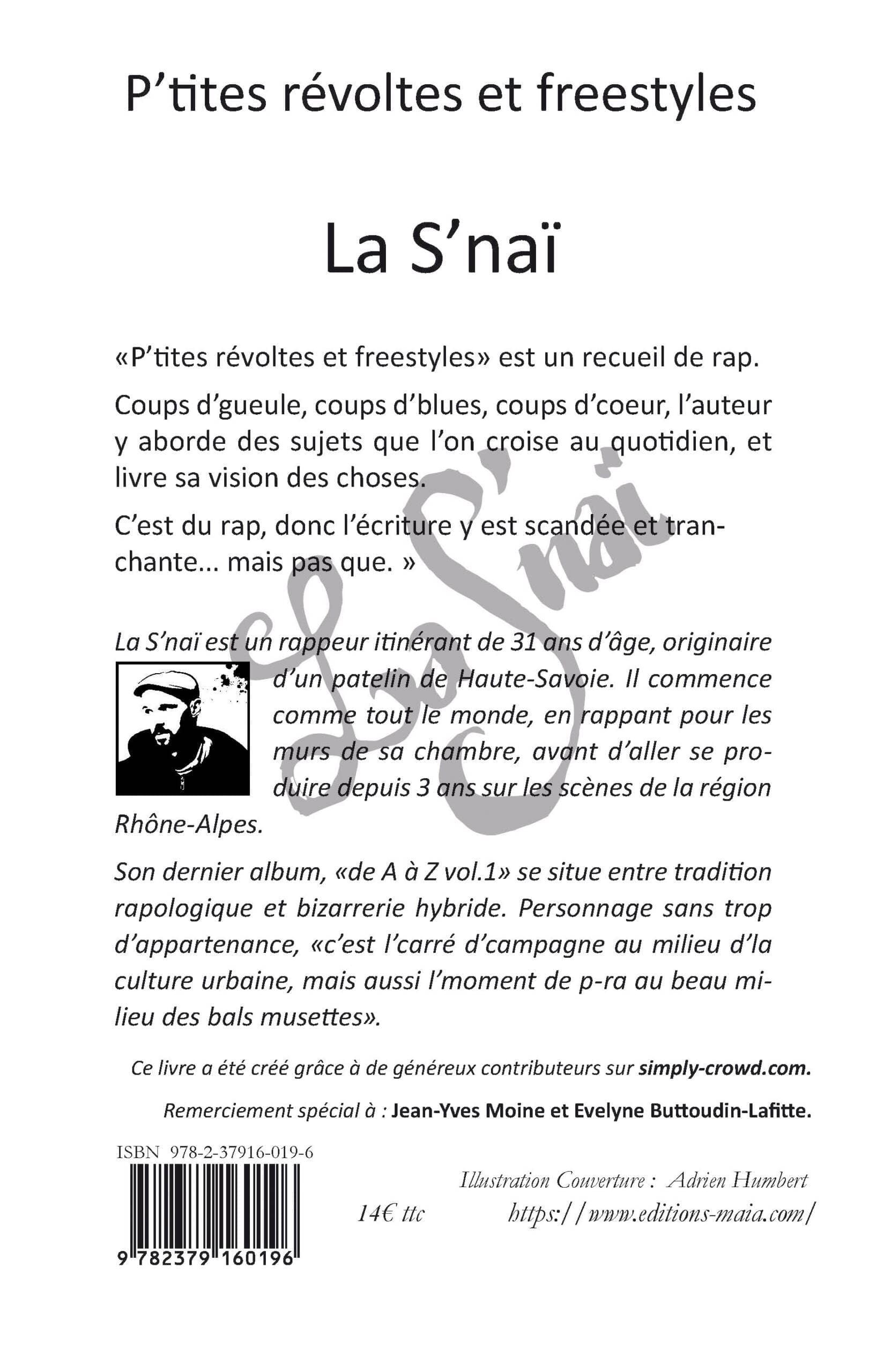La S’naï est un rappeur itinérant de 31 ans d’âge, originaire d’un patelin de Haute-Savoie. Il commence comme tout le monde, en rappant pour les murs de sa chambre, avant d’aller se produire depuis 3 ans sur les scènes de la région Rhône-Alpes. Son dernier album, «de A à Z vol.1» se situe entre tradition rapologique et bizarrerie hybride. Personnage sans trop d’appartenance, «c’est l’carré d’campagne au milieu d’la culture urbaine, mais aussi l’moment de p-ra au beau milieu des bals musettes».