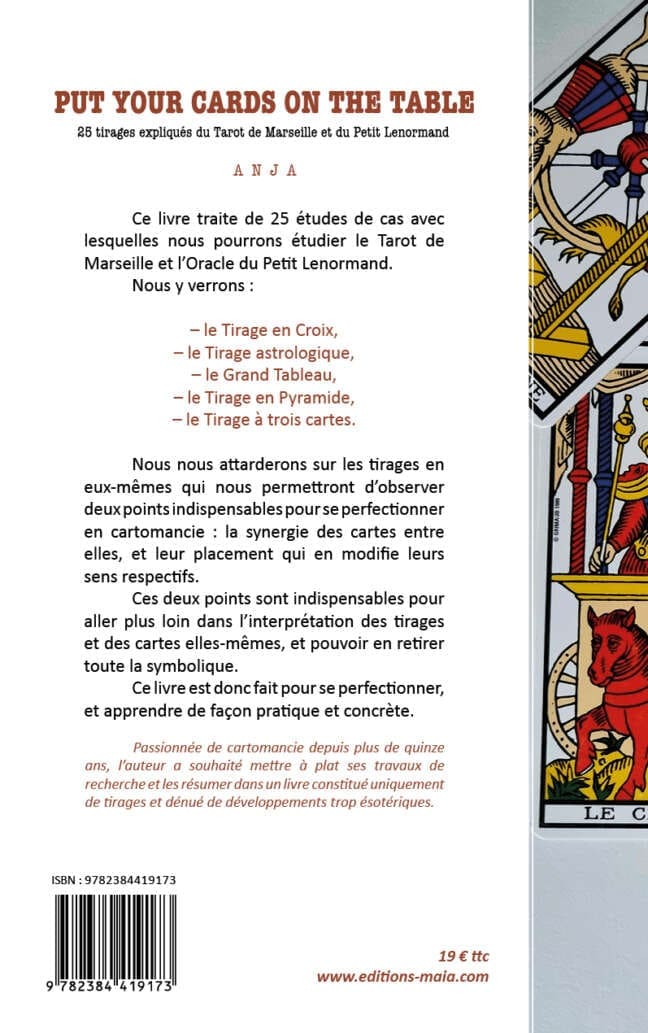 Ce livre traite de 25 études de cas avec lesquelles nous pourrons étudier le Tarot de Marseille et l’Oracle du Petit Lenormand.