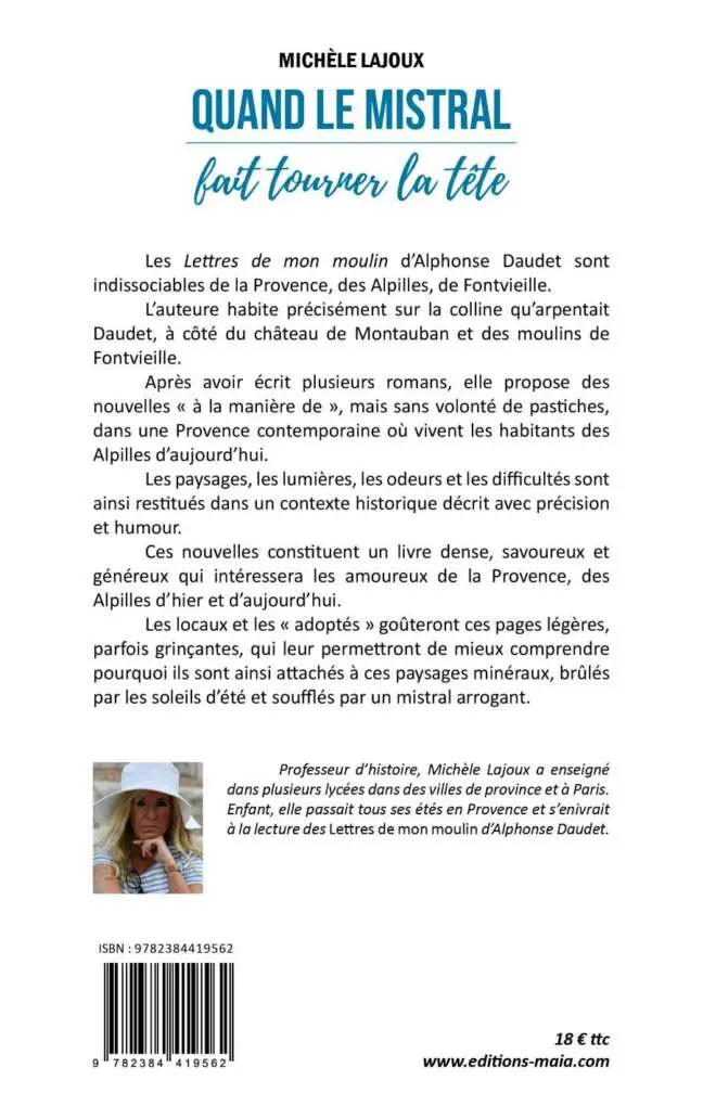 Professeur d’histoire, Michèle Lajoux a enseigné dans plusieurs lycées dans des villes de province et à Paris. Enfant, elle passait tous ses étés en Provence et s’enivrait à la lecture des Lettres de mon moulin d’Alphonse Daudet.