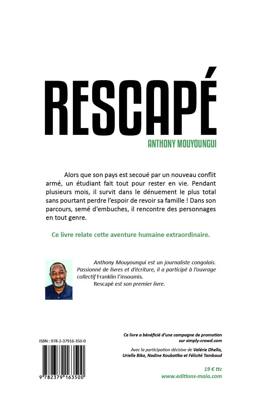 Anthony Mouyoungui est un journaliste congolais. Passionné de livres et d’écriture, il a participé à l’ouvrage collectif Franklin l’insoumis. Rescapé est son premier livre.