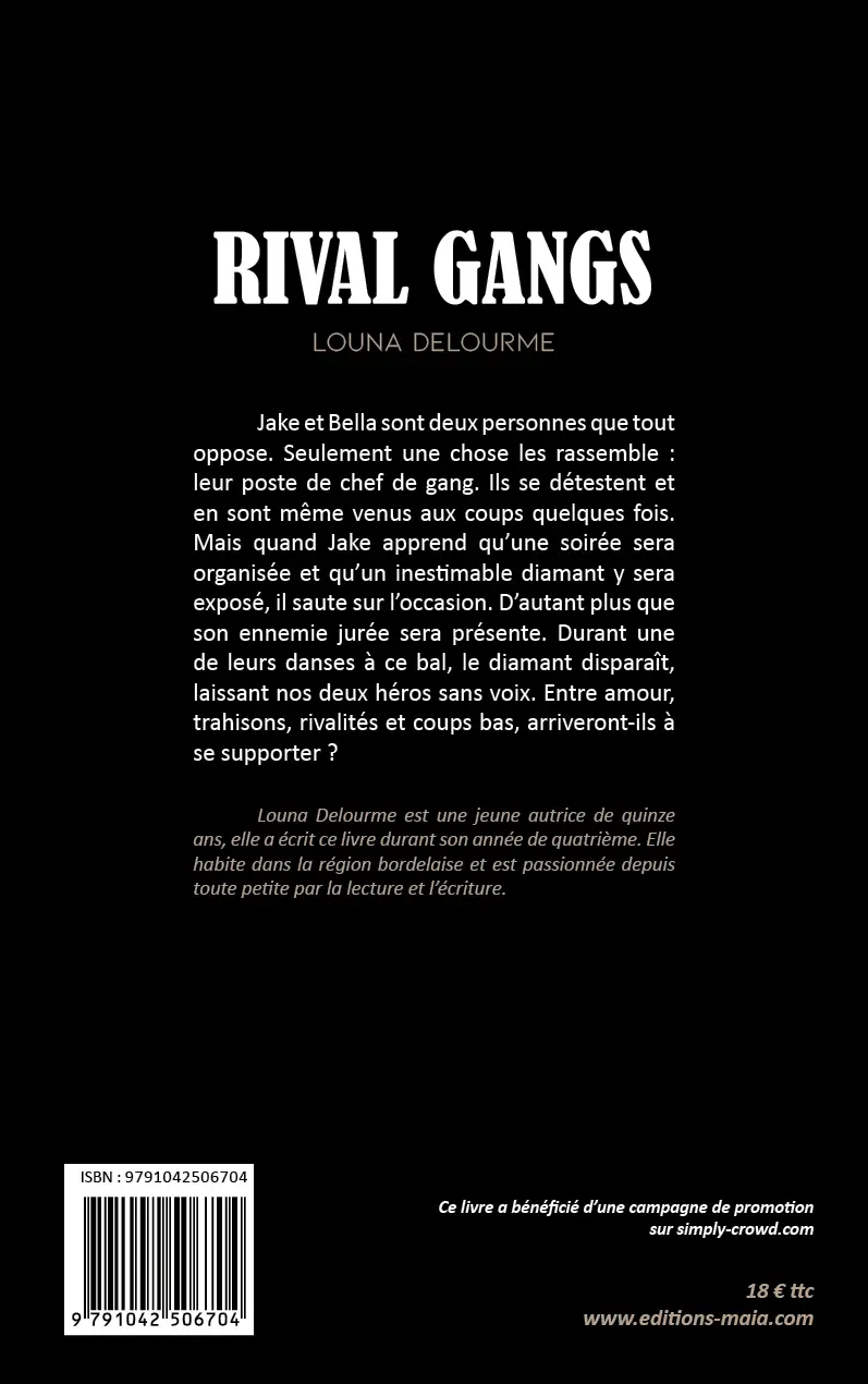 Louna Delourme est une jeune autrice de quinze ans, elle a écrit ce livre durant son année de quatrième. Elle habite dans la région bordelaise et est passionnée depuis toute petite par la lecture et l’écriture.