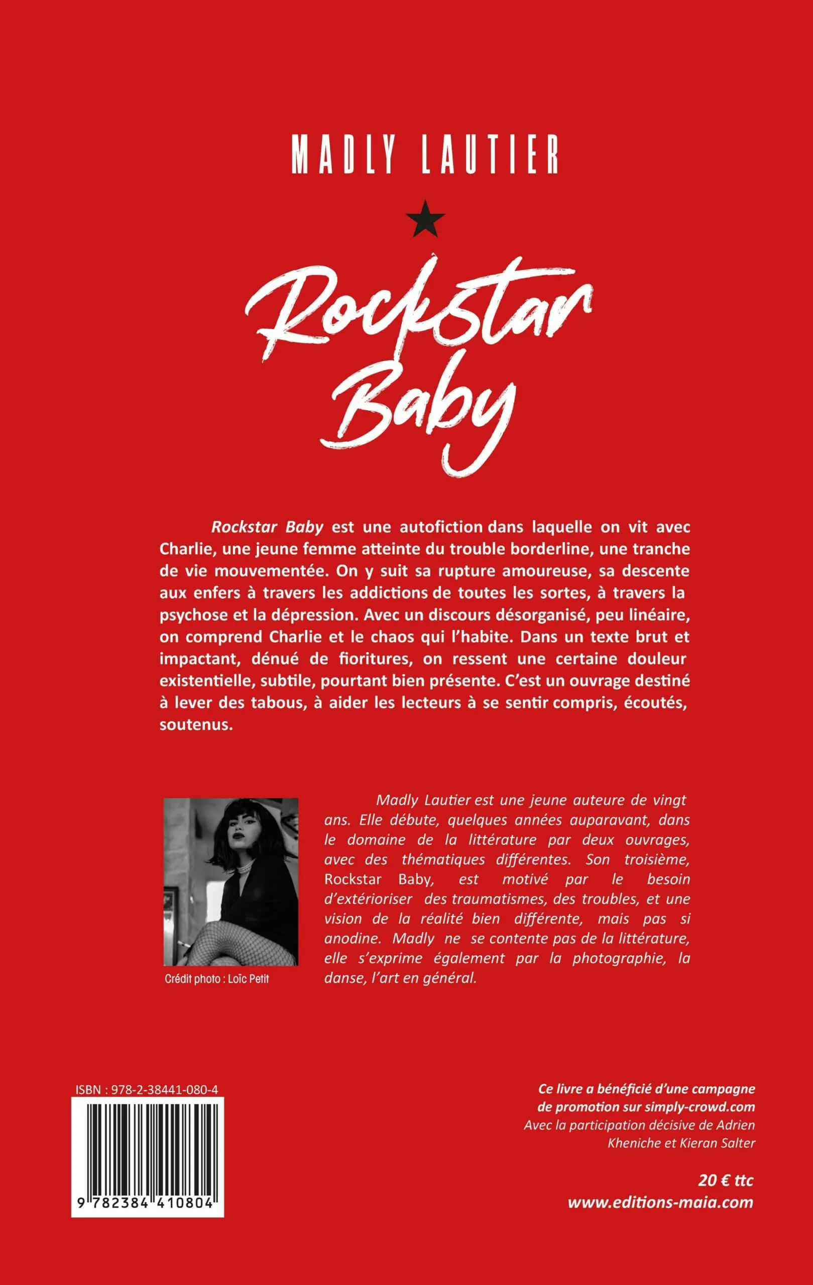 Madly Lautier est une jeune auteure de vingt ans. Elle débute, quelques années auparavant, dans le domaine de la littérature par deux ouvrages, avec des thématiques différentes. Son troisième, Rockstar Baby, est motivé par le besoin d’extérioriser des traumatismes, des troubles, et une vision de la réalité bien différente, mais pas si anodine. Madly ne se contente pas de la littérature, elle s’exprime également par la photographie, la danse, l’art en général.