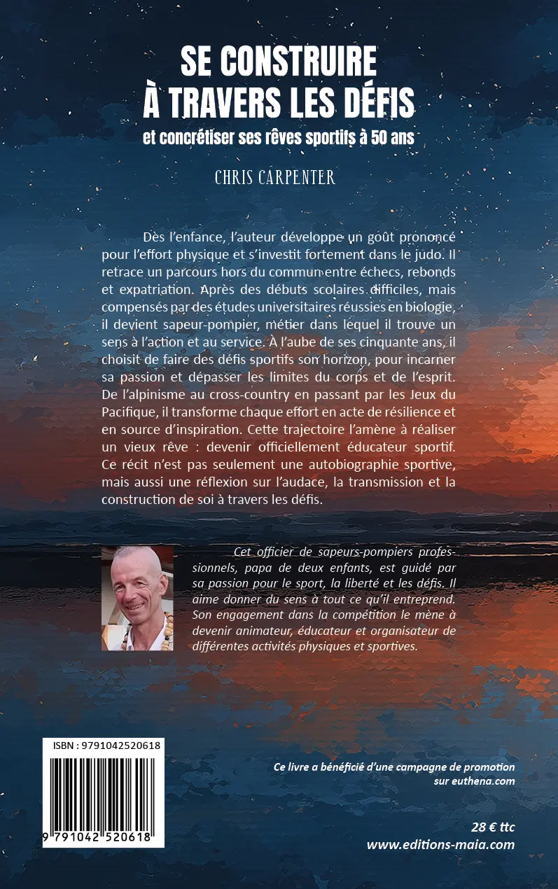 Dès l’enfance, l’auteur développe un goût prononcé pour l’effort physique et s’investit fortement dans le judo. Il retrace un parcours hors du commun entre échecs, rebonds et expatriation. Après des débuts scolaires difficiles, mais compensés par des études universitaires réussies en biologie, il devient sapeur-pompier, métier dans lequel il trouve un sens à l’action et au service. À l’aube de ses cinquante ans, il choisit de faire des défis sportifs son horizon, pour incarner sa passion et dépasser les limites du corps et de l’esprit. De l’alpinisme au cross-country en passant par les Jeux du Pacifique, il transforme chaque effort en acte de résilience et en source d’inspiration. Cette trajectoire l’amène à réaliser un vieux rêve : devenir officiellement éducateur sportif. Ce récit n’est pas seulement une autobiographie sportive, mais aussi une réflexion sur l’audace, la transmission et la construction de soi à travers les défis.
