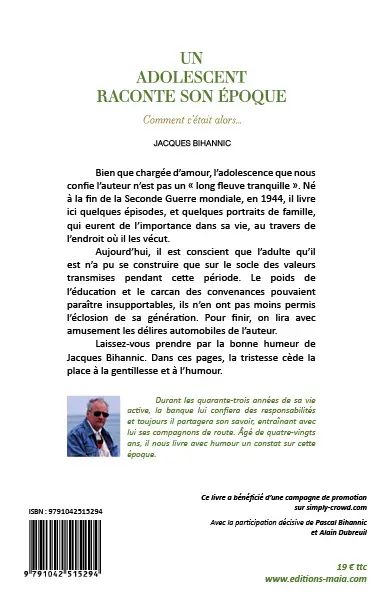 Aujourd’hui, il est conscient que l’adulte qu’il est n’a pu se construire que sur le socle des valeurs transmises pendant cette période. Le poids de l’éducation et le carcan des convenances pouvaient paraître insupportables, ils n’en ont pas moins permis l’éclosion de sa génération. Pour finir, on lira avec amusement les délires automobiles de l’auteur.