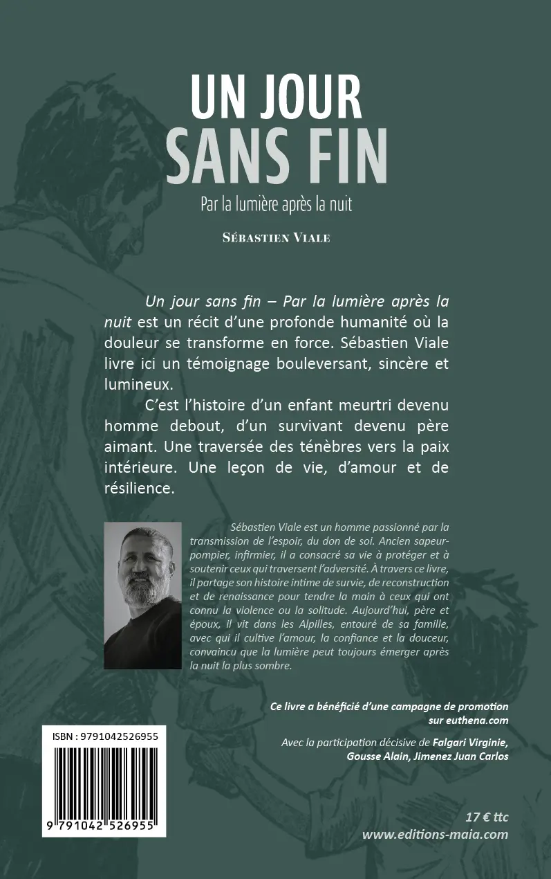 Un jour sans fin – Par la lumière après la nuit est un récit d’une profonde humanité où la douleur se transforme en force. Sébastien Viale livre ici un témoignage bouleversant, sincère et lumineux.