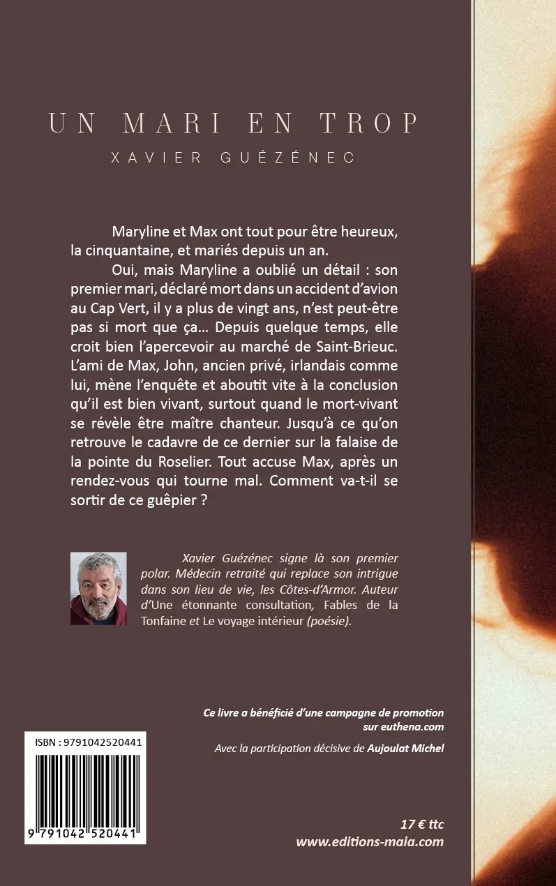 Xavier Guézénec signe là son premier polar. Médecin retraité qui replace son intrigue dans son lieu de vie, les Côtes-d’Armor. Auteur d’Une étonnante consultation, Fables de la Tonfaine et Le voyage intérieur (poésie).