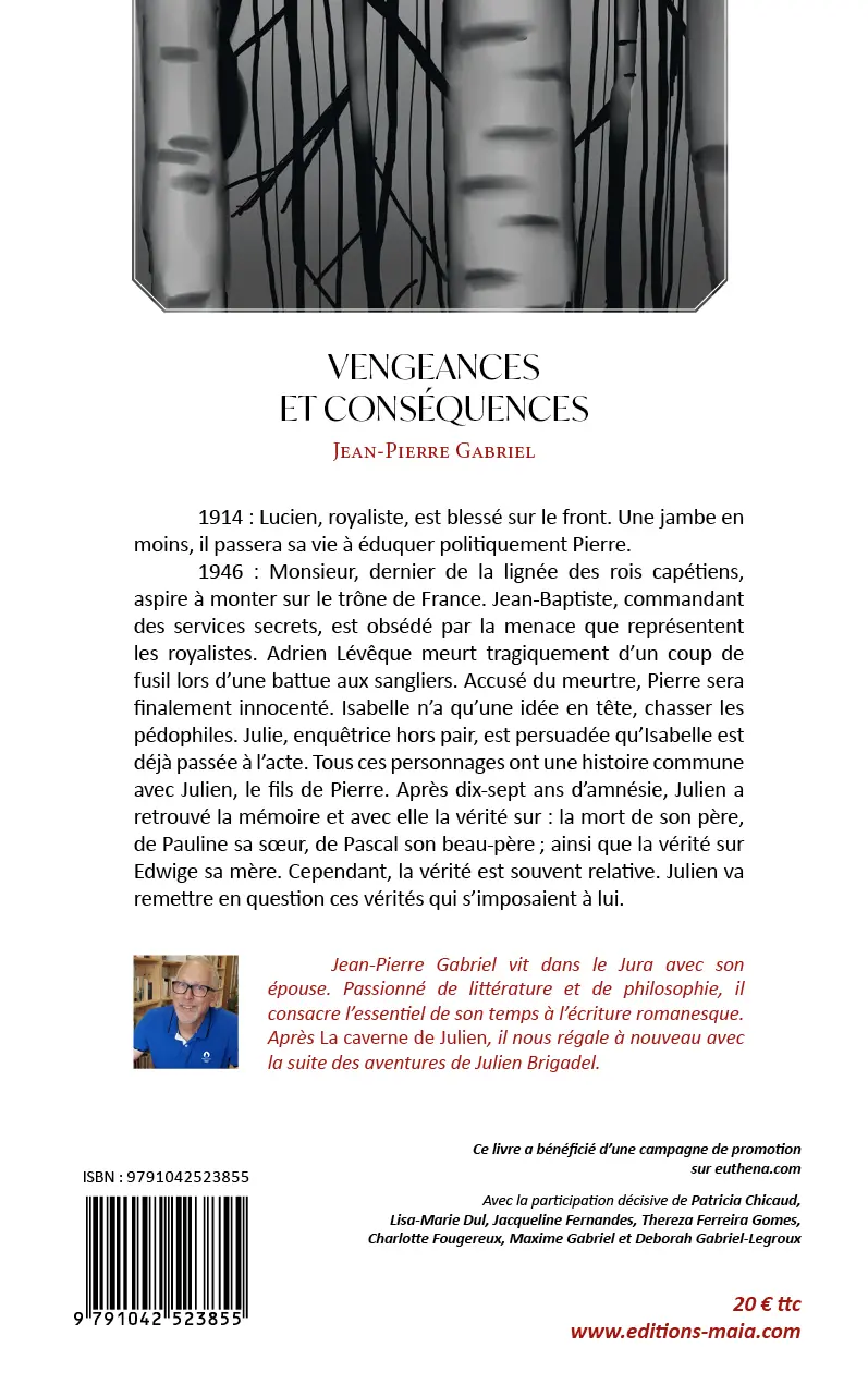 Jean-Pierre Gabriel vit dans le Jura avec son épouse. Passionné de littérature et de philosophie, il consacre l’essentiel de son temps à l’écriture romanesque. Après La caverne de Julien, il nous régale à nouveau avec la suite des aventures de Julien Brigadel.